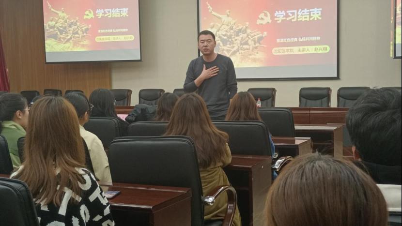 11月3日上午在致远楼第一会议室,赵兴明书记以“井冈山斗争与井冈山精神”为题,从井冈山斗争历史概况、井冈山精神的科学内涵、井冈山精神的现实意义三个方面,以图、文、视频为载体,生动地讲述了井冈山斗争地历史,详细阐述了井冈山精神及现实意义。