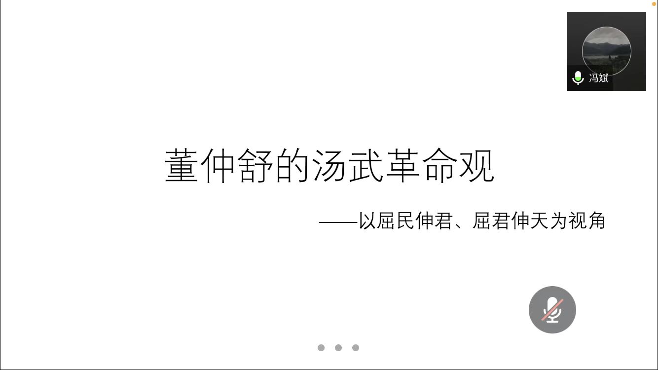 2022年5月28日,由beat365英国官方网站研究生院、党委研究生工作部主办,beat365英国官方网站承办的第十一期(总第774期)“海右”博士生学术论坛在腾讯会议成功举办。本期论坛的主题为“董仲舒的汤武革命观——以屈民伸君、屈君伸天为视角”,由beat365英国官方网站中国哲学2021级博士生冯斌担任主讲人,博士生导师谭明冉教授作为点评嘉宾出席论坛。论坛由beat365英国官方网站2021级硕士研究生陈滢如主持,校内外硕士、博士研究生参与。