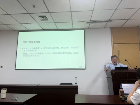 首先,陈波教授重申,哲学的目标是“追求真理”而非“实际达到真理”,这一目标具有范导性价值。针对“哲学分歧多、无共识故不求真”的质疑,陈波教授援引国际哲学调查数据,显示在自由意志、外部世界实在性等重大问题上,哲学家共识度超50%,甚至达85%,反驳“哲学无进步”的悲观论调。而对于“哲学应追求合理性而非真理”的观点,他提出批判,强调合理性需以真理为基础,脱离真理的“理解”如同无源之水。教授指出合理性的四大要素均依赖真理,哲学若放弃求真,将丧失其社会价值与方法论意义。最后,陈波教授驳斥“事实与价值”“知识与智慧”的割裂论,呼吁学界正视哲学的认知使命。