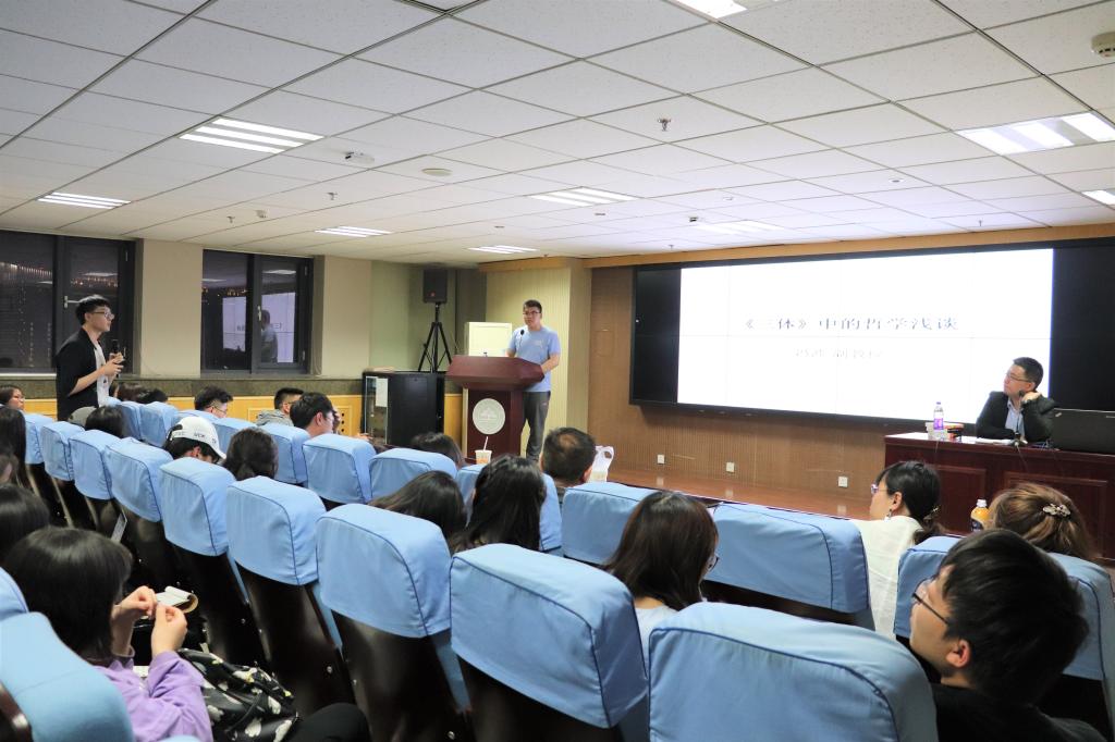 来自不同学院百余名学生参加本次讲座。讲座结束后,冯波就《三体》中部分情节的发展以及其背后所包含的哲学逻辑与在场同学进行了热烈的交流。