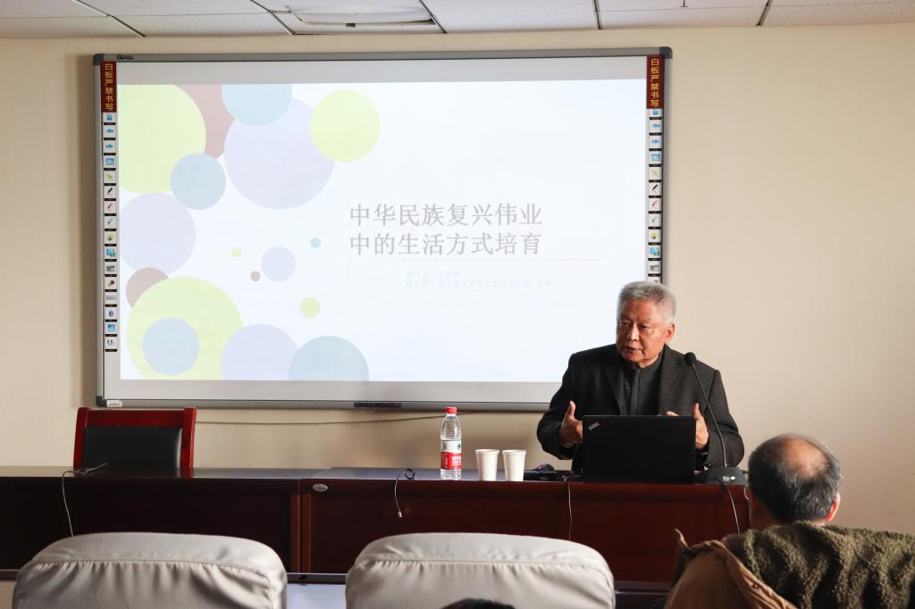 12月9日下午,哈尔滨工程大学人文与社会科学学院特聘教授王亚林在知新楼A1408作了题为“中华民族复兴伟业中的生活方式培育”的学术报告,beat365英国官方网站社会学系教授林聚任主持。