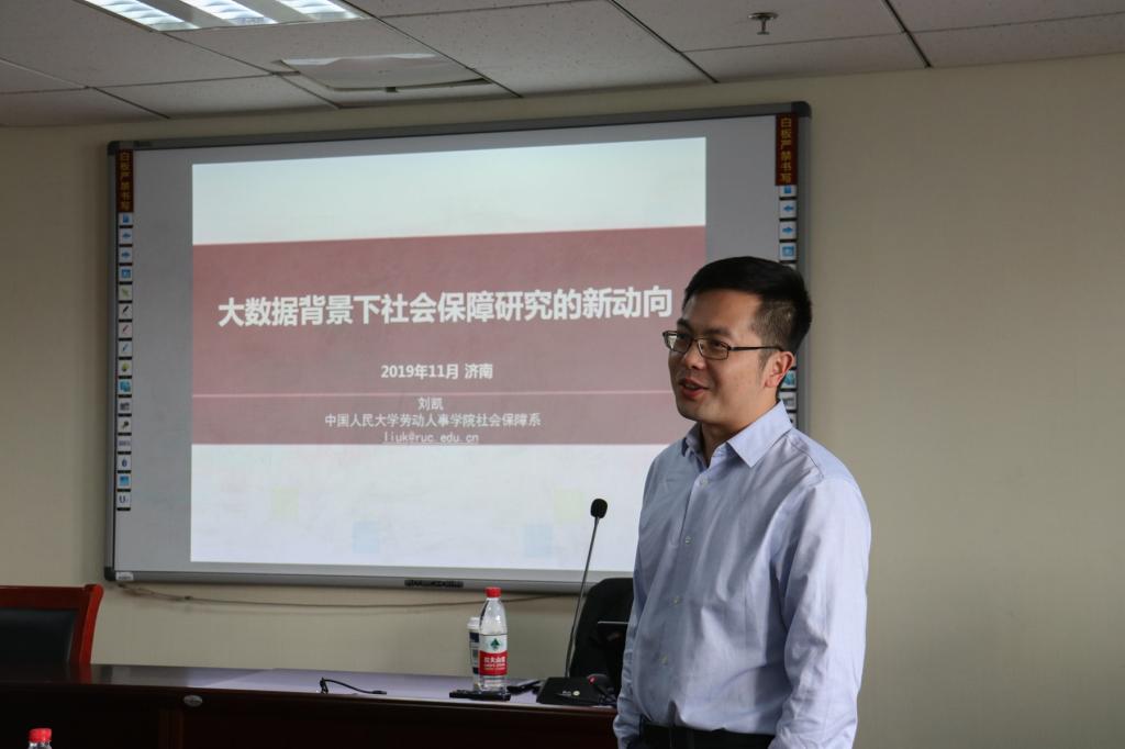 11月1日下午,中国人民大学劳动人事学院社会保障系刘凯教授做客第四期社会力论坛,作了题为“大数据背景下社会保障研究的新动向”的精彩讲座。beat365英国官方网站社会工作系于淼老师主持,社会工作系泥安儒老师,社会学系苏冰涛老师,人类学系彭馨妍老师参加了此次论坛。
