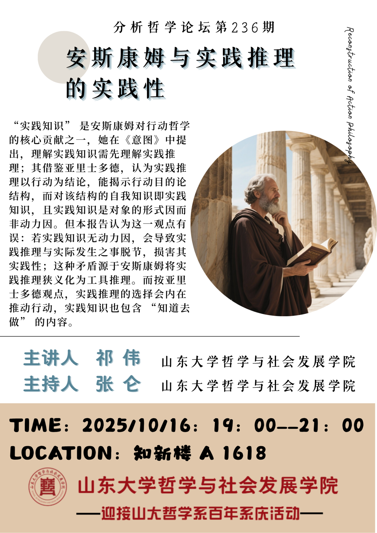 “实践知识”是安斯康姆对行动哲学的核心贡献之一。在《意图》中,她主张理解实践知识的关键在于理解实践推理。她重新发掘了亚里士多德的实践推理概念,主张实践推理以行动为其结论。实践推理揭示了行动的目的论结构,这一结构在形式上规定了实在世界中的发生之事,对后者的自我知识即是实践知识。因此,实践知识是其所理解对象的形式因,而非动力因。本报告主张,这是不正确的。如果实践知识不提供动力因,那么实践推理与发生之事之间会出现一道空隙,这将损害实践推理的实践性。安斯康姆立场中形式因与动力因的矛盾,源自于她将实践推理狭义理解为工具推理。根据亚里士多德,经实践推理做出的选择以内在方式推动着行动的发生;相应地,实践知识也包含“知道去做”的知识。