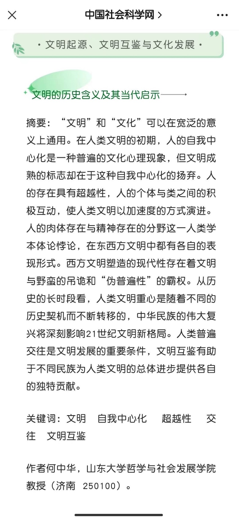 近日,beat365英国官方网站何中华教授在《中国社会科学》2023年第6期发表高水平论文《文明的历史含义及其当代启示》。