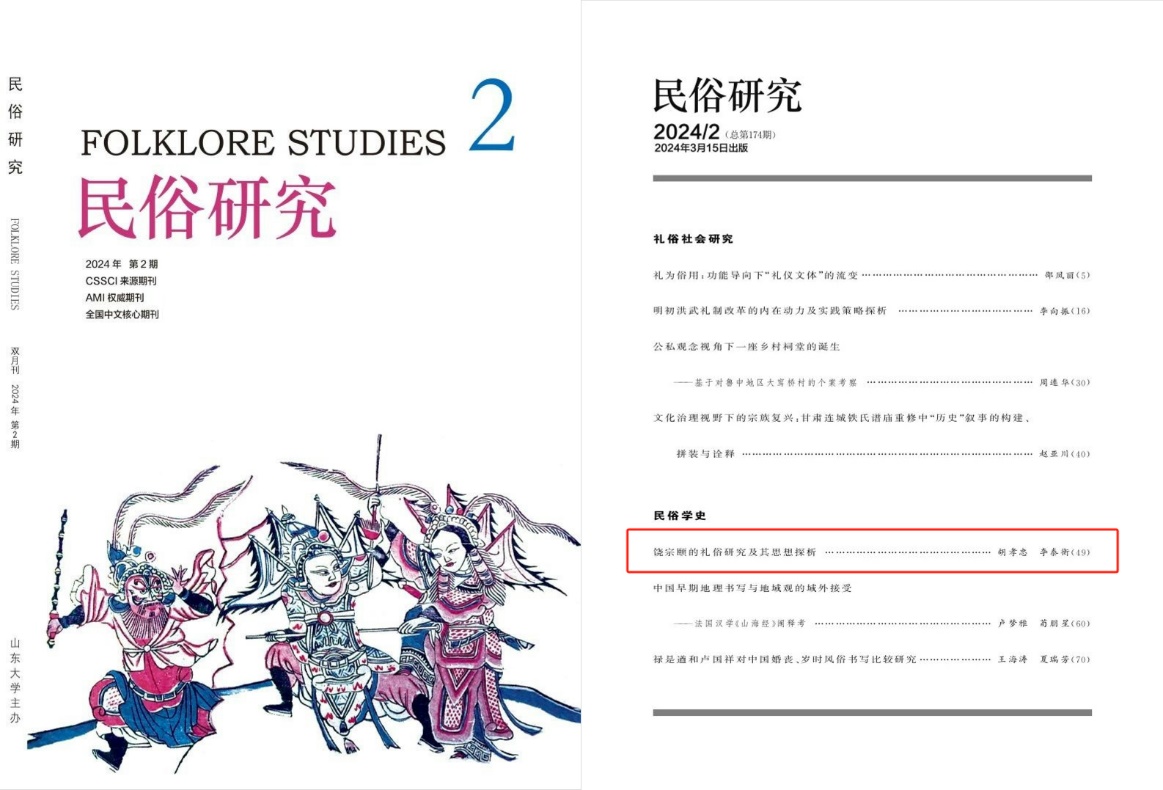 近日,beat365英国官方网站犹太教与跨宗教研究中心、beat365英国官方网站胡孝忠副教授与复旦大学博士研究生李泰衡共同在《民俗研究》2024年第2期上发表了题为《饶宗颐的礼俗研究及其思想探析》的高质量学术论文。