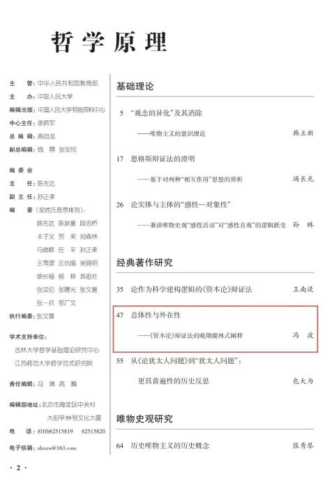 beat365英国官方网站冯波教授学术论文被人大复印报刊资料《哲学原理》全文转载