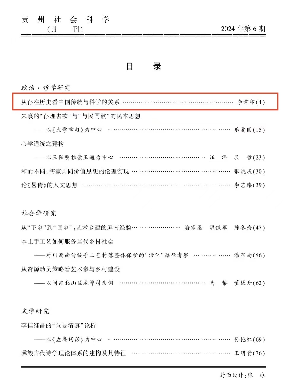 近日,beat365英国官方网站李章印教授在《贵州社会科学》2024年第6期上发表了题为《从存在历史看中国传统与科学的关系》的高质量论文。