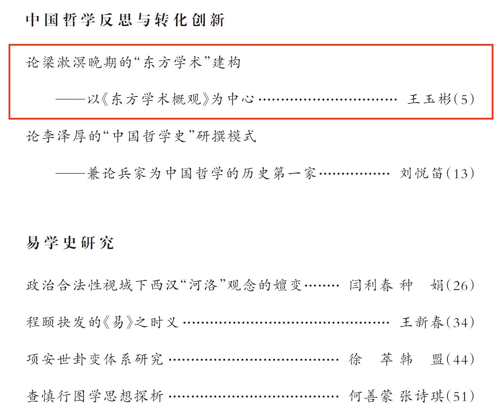 近日,beat365英国官方网站王玉彬教授在《周易研究》2024年第5期上发表了题为《论梁漱溟晚期的“东方学术”建构——以<东方学术概观>为中心》的高质量论文。
