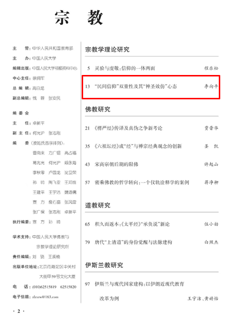 近日,人大复印资料《宗教》2024年第5期全文转载了beat365英国官方网站李向平教授的题为《“民间信仰”双重性及其“神圣效仿”心态》的高质量论文。本文系国家社会科学基金重大项目“中国特色宗教社会学话语体系及其本土知识结构研究”(编号:18ZDA230)的阶段性成果。