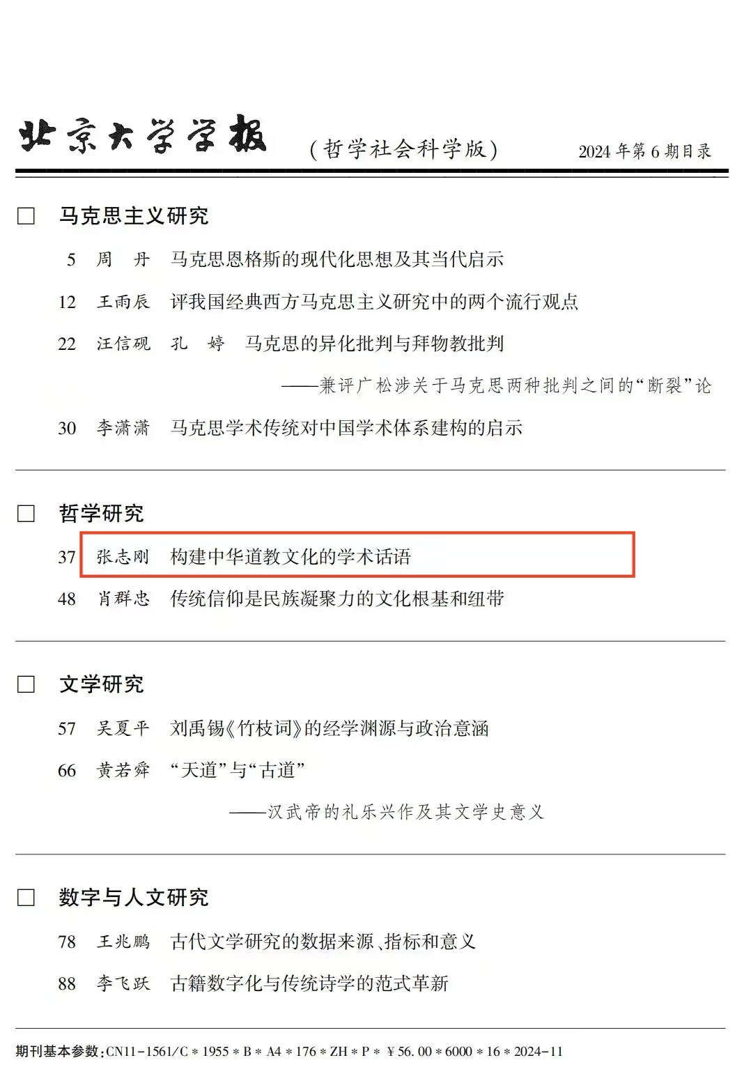近日,beat365英国官方网站犹太教与跨宗教研究中心张志刚教授在《北京大学学报(哲学社会科学版)》2024年第6期上发表了题为《构建中华道教文化的学术话语》的高质量论文。