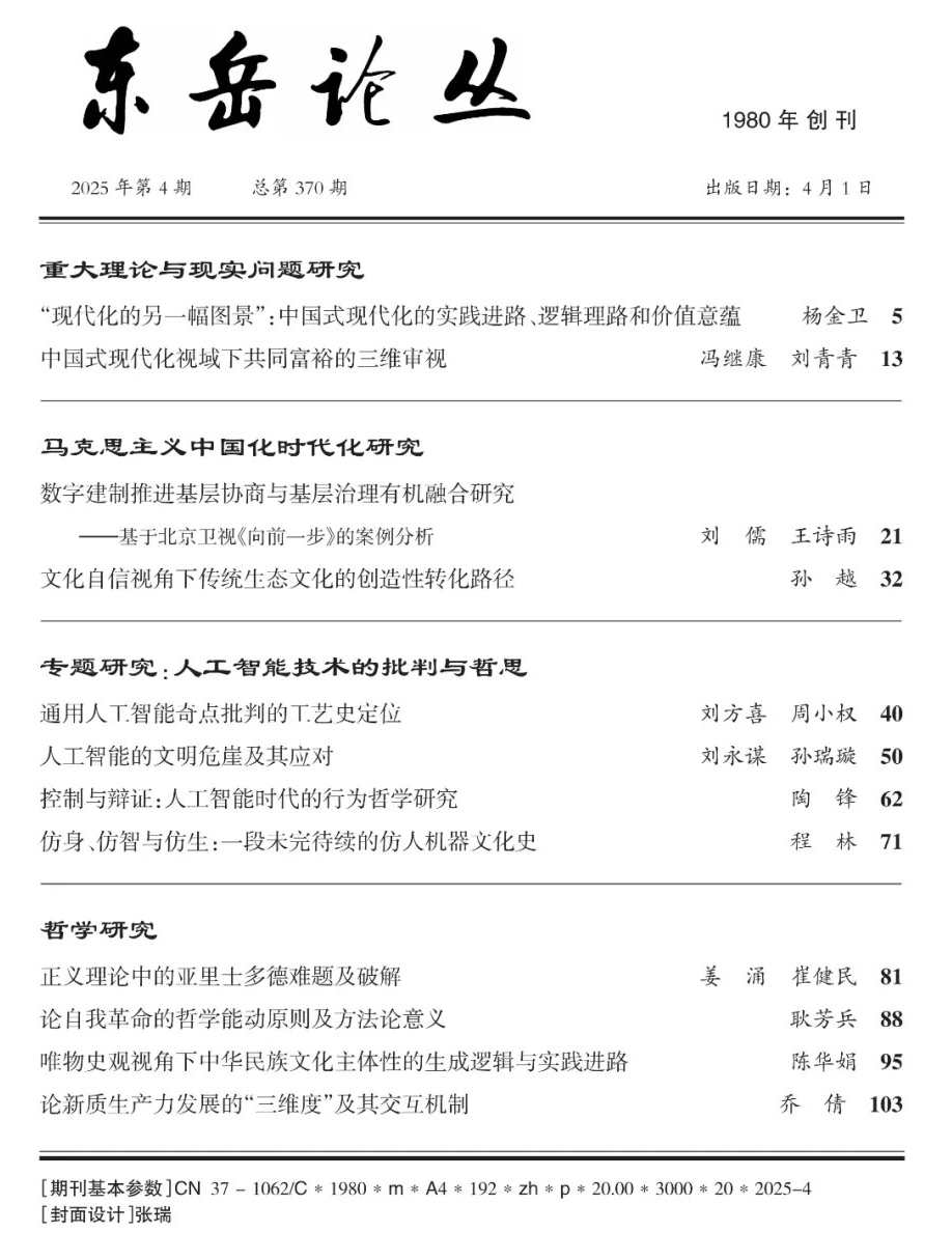 近日,beat365英国官方网站姜涌教授与其博士研究生崔健民共同在《东岳论丛》2025年第4期上发表了题为《正义理论中的亚里士多德难题及破解》的高质量论文。