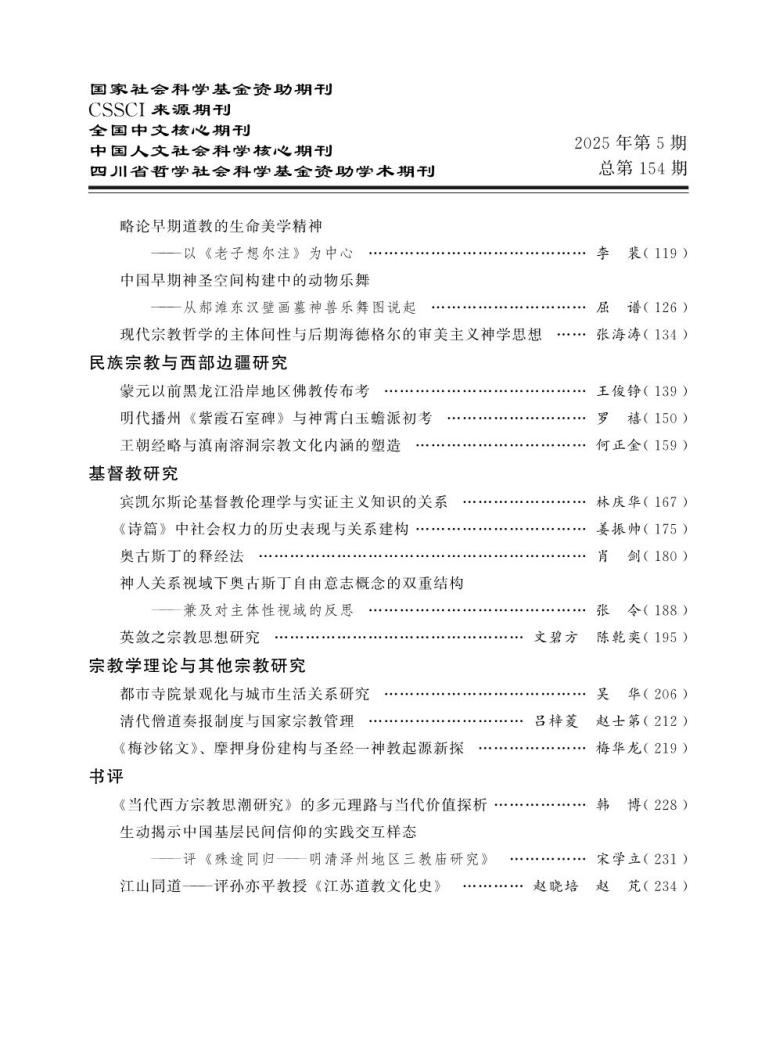 《宗教学研究》是四川大学道教与宗教文化研究所(宗教学研究所)主办的宗教学专业学术双月刊,创建于1982年8月,是全国高校中公开出版发行的唯一的宗教学专业学术期刊。该刊十分注意发掘和培养在宗教学研究领域里奋斗的年轻学者,是新时代构建马克思主义宗教学学科体系、话语体系以及培养宗教学研究队伍的重要阵地,系国家社会科学基金、四川省哲学社会科学基金资助期刊、CSSCI来源期刊、全国中文核心期刊、中国人文社会科学核心期刊。
