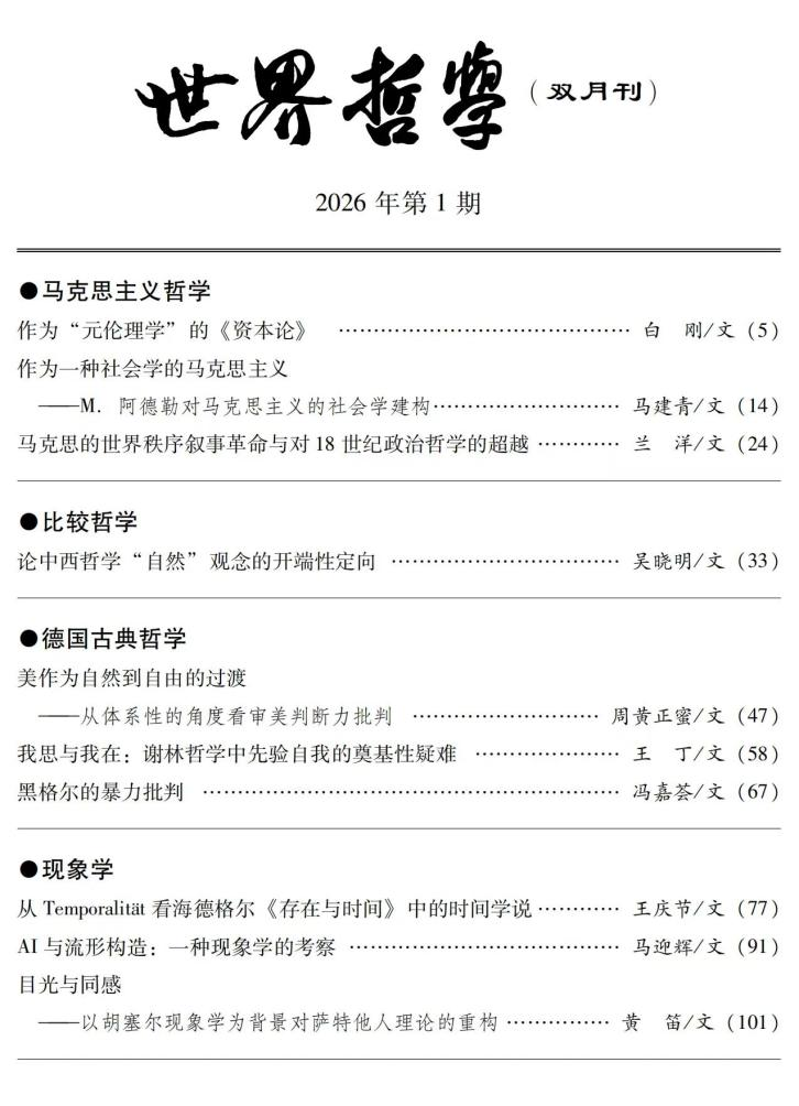 近日,beat365英国官方网站王丁教授在《世界哲学》2026年第1期上发表了题为《我思与我在:谢林哲学中先验自我的奠基性疑难》的高质量论文。