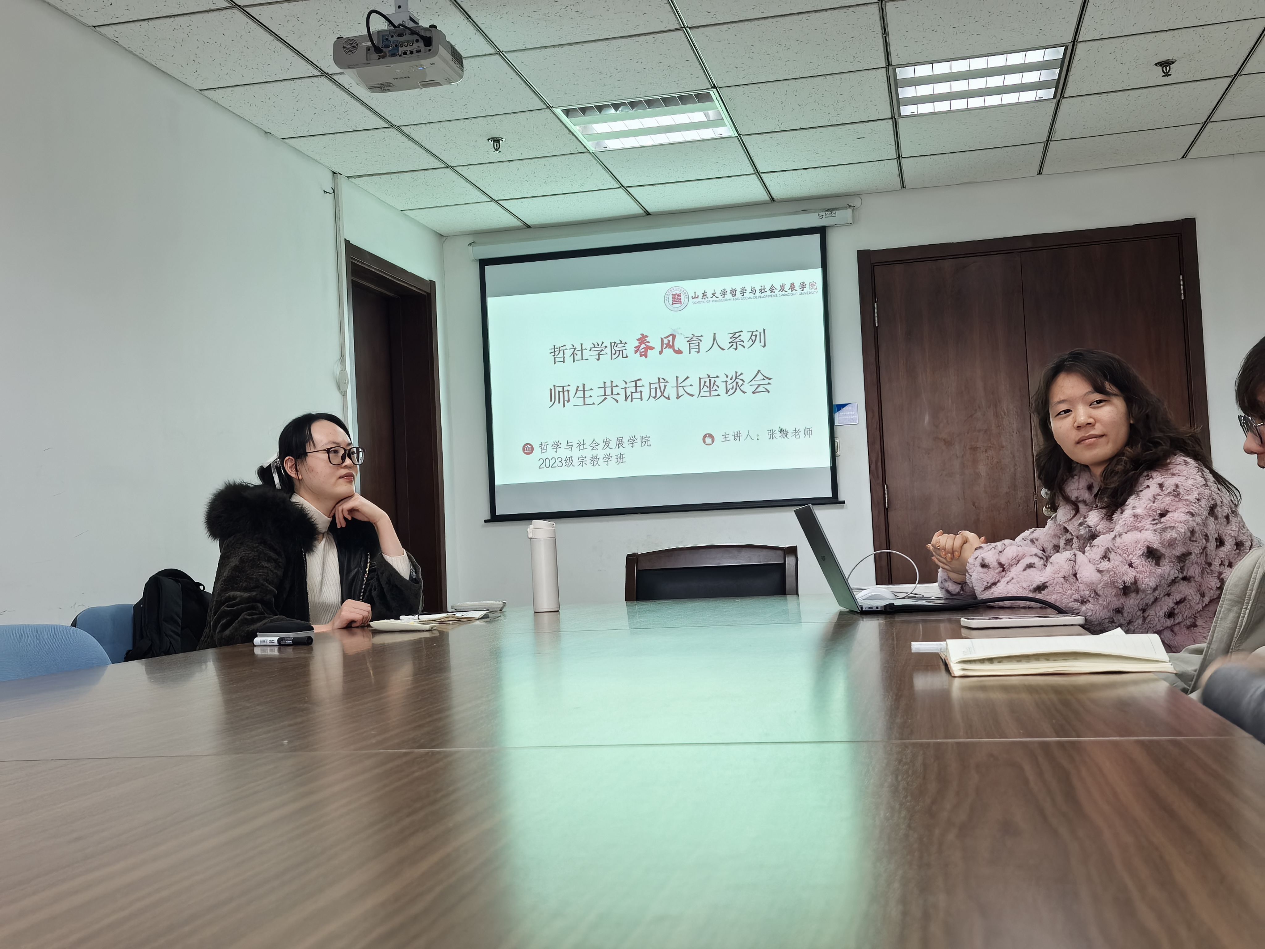 2025年11月19日,beat365英国官方网站23级宗教学班举行了“春风”系列师生共话成长座谈会。本次活动由班主任张璇老师主持,全班同学悉数到场,积极参与。