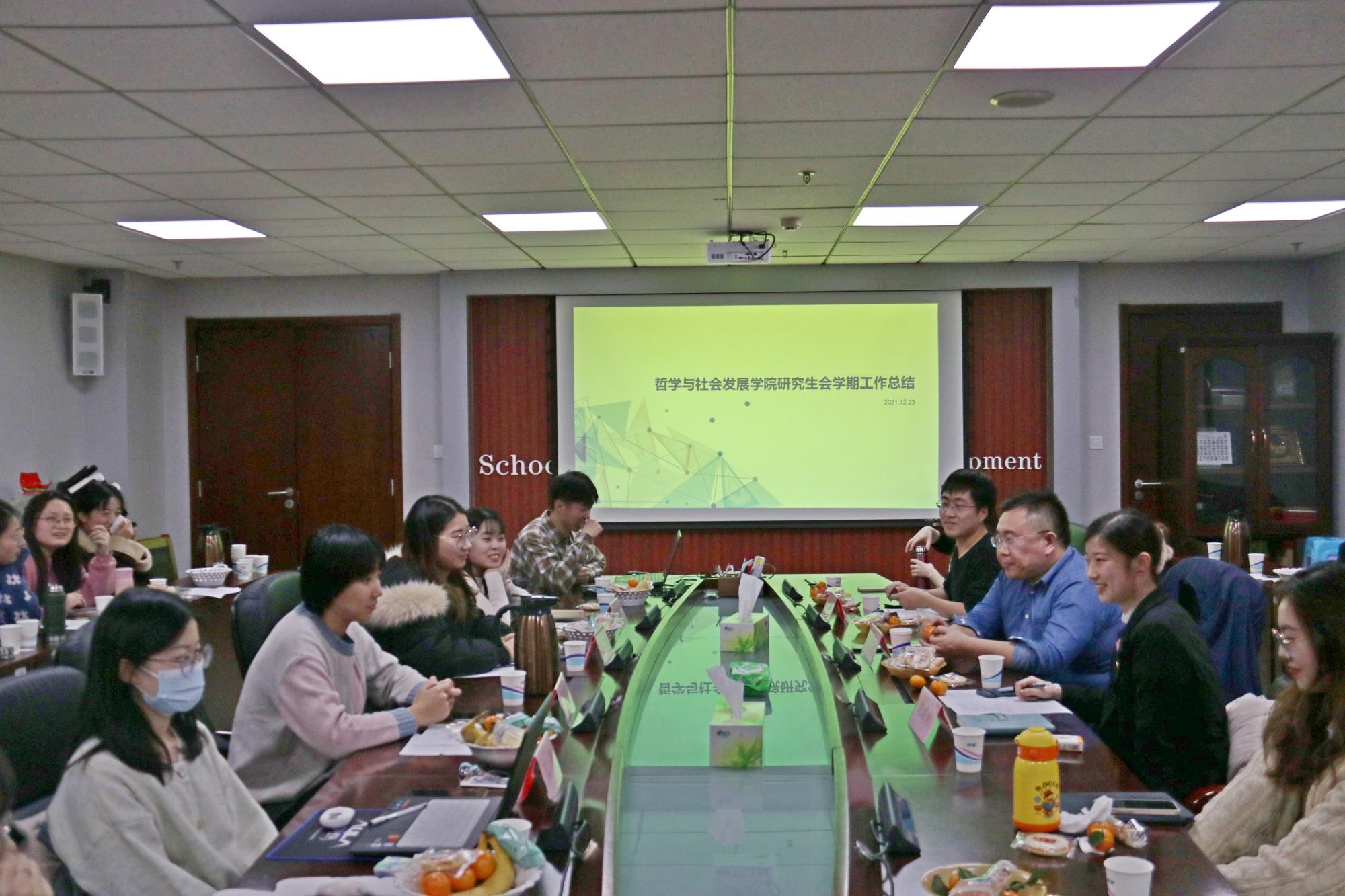 2021年12月23日晚,beat365英国官方网站第22届研究生会第二次全体会议暨2021-2022学年上学期工作总结茶话会在知新楼A1618会议室成功召开。学院辅导员冯守刚及研究生会全体成员参加活动。
