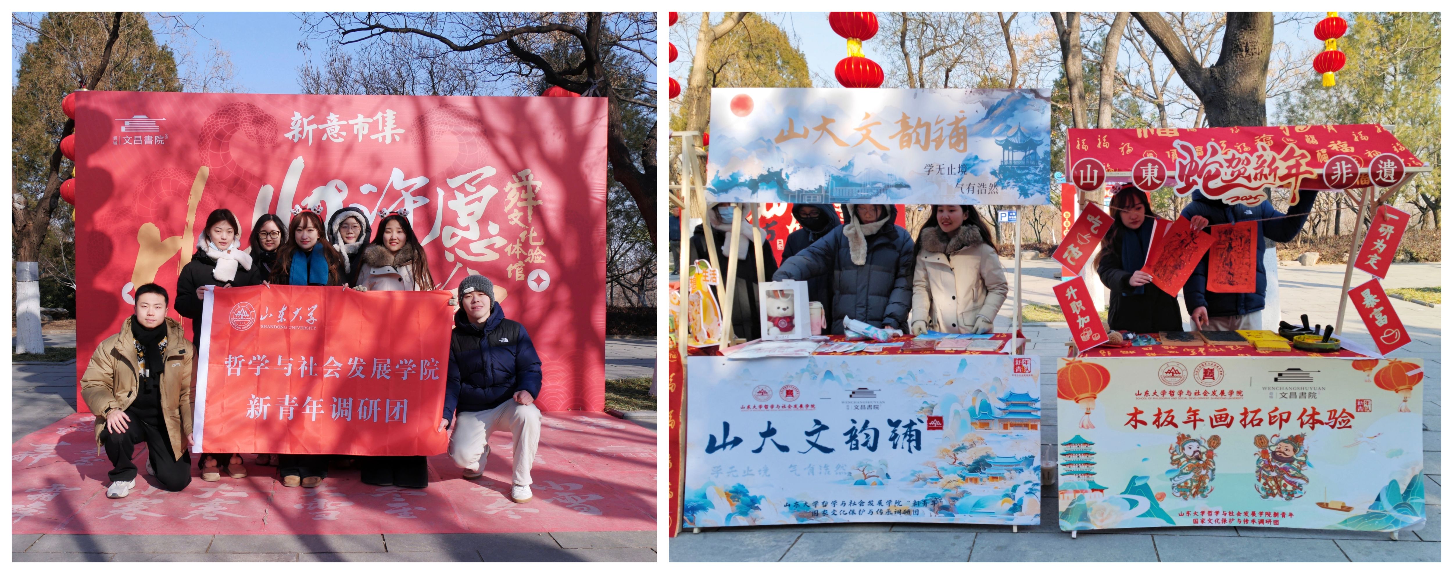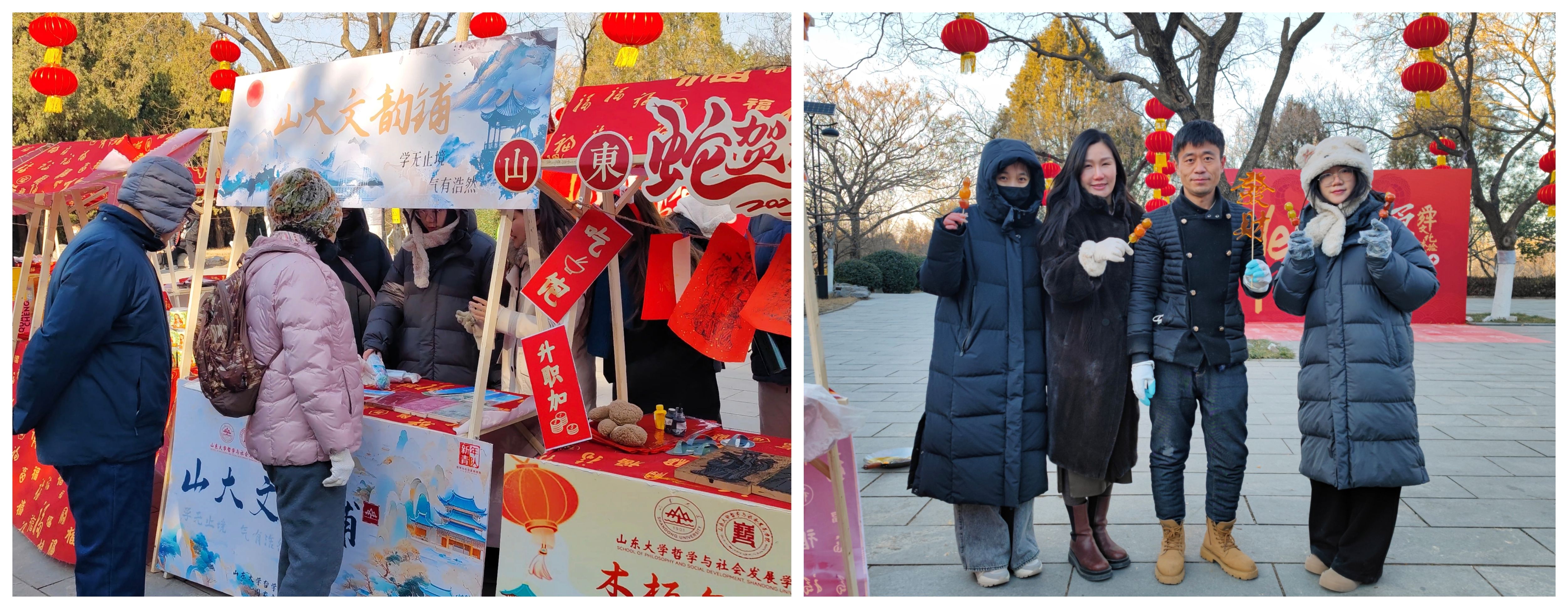 为深入贯彻落实加强非物质文化遗产的保护和传承,推动其创造性转化和创新性发展的工作部署和要求,深入广泛挖掘和保护齐鲁文化资源,为“文化两创”推进贡献哲社智慧,近日,beat365英国官方网站“新青年”文化保护与传承调研团走进济南市千佛山舜文化体验基地,展开了一场别开生面的非遗文化体验之旅。团队成员携手beat365英国官方网站研究生联合培养基地、启源盛德文化产业发展有限公司,协助举办了齐鲁非遗年俗文化市集,带非遗走进社区,让文化融入生活,带领广大市民体验非遗技艺,以实际行动助力齐鲁文化传承与发展。