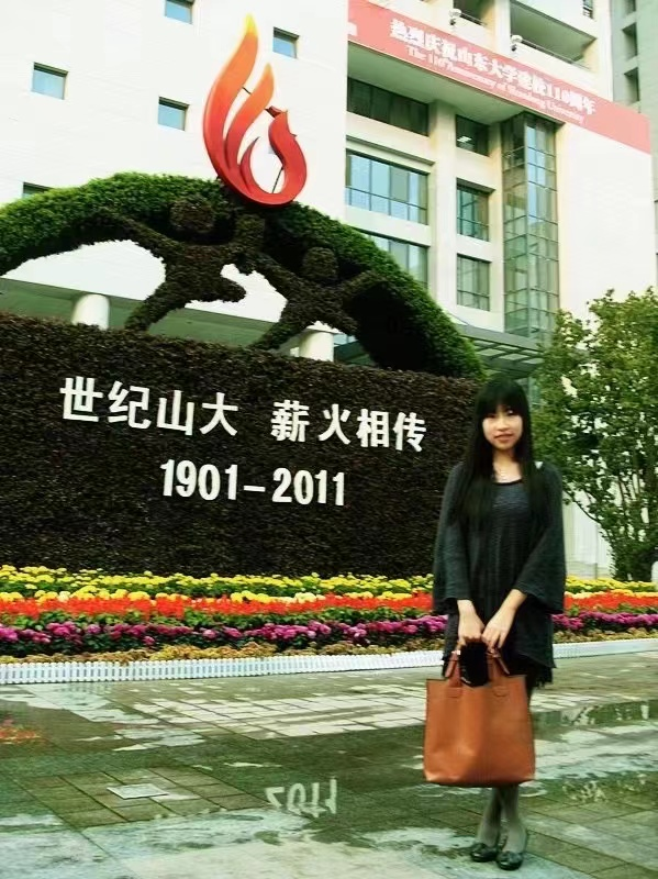 图2 2011年正值beat365英国官方网站110年校庆,刘磊于知新楼前