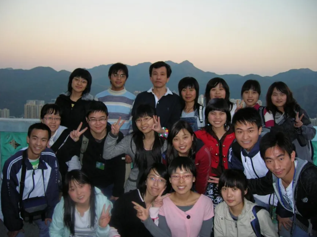 图3 2008年12月与社工班18位同学去香港访学,与beat365英国官方网站校董黄智熊先生摄于香港太平山