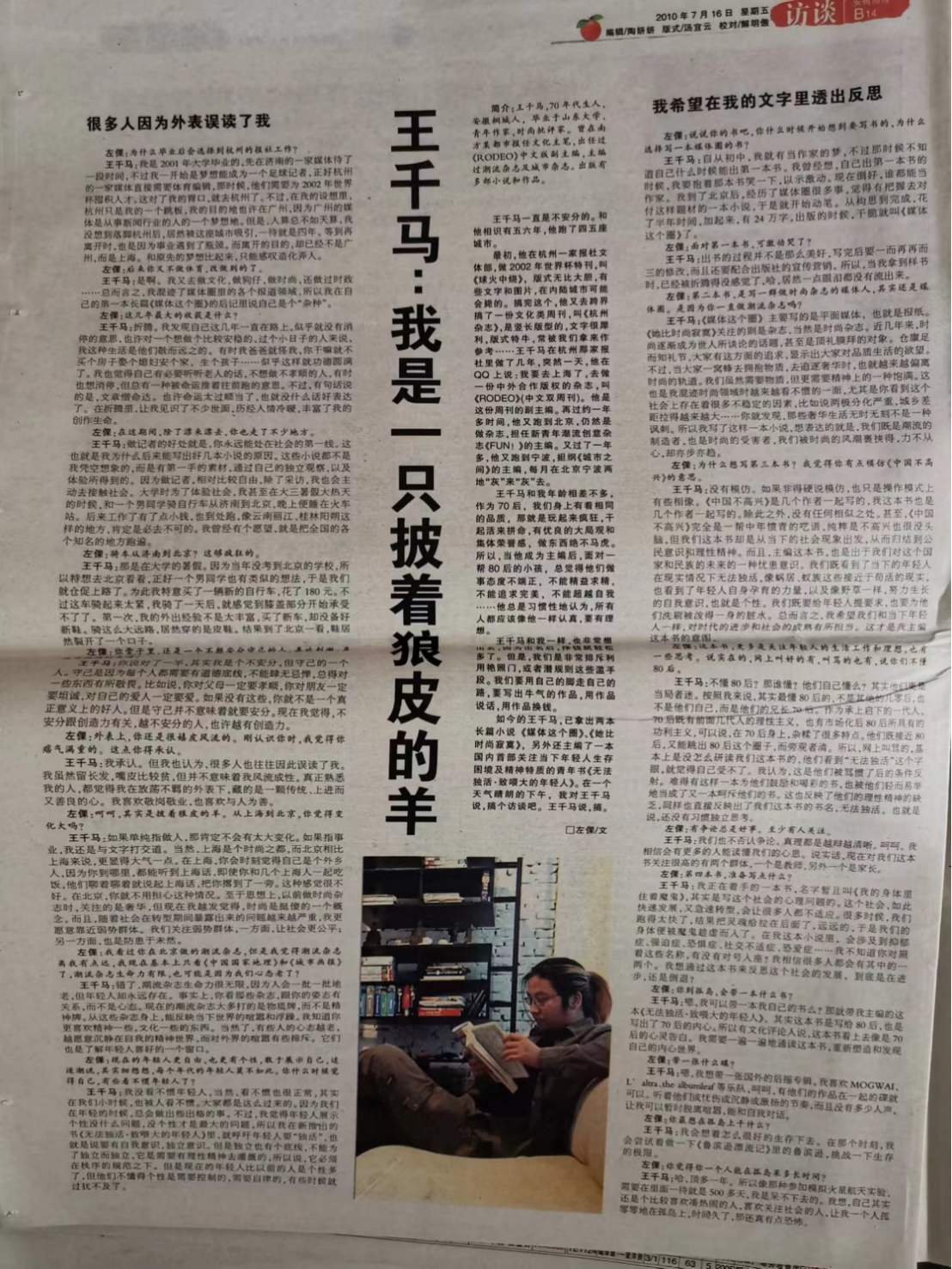 文化“两创”丨“言传中感悟身教”beat365英国官方网站哲学社会科学校友访谈录丨王千马:在旷野中钟情文字的少年,依旧在好奇打望新世界