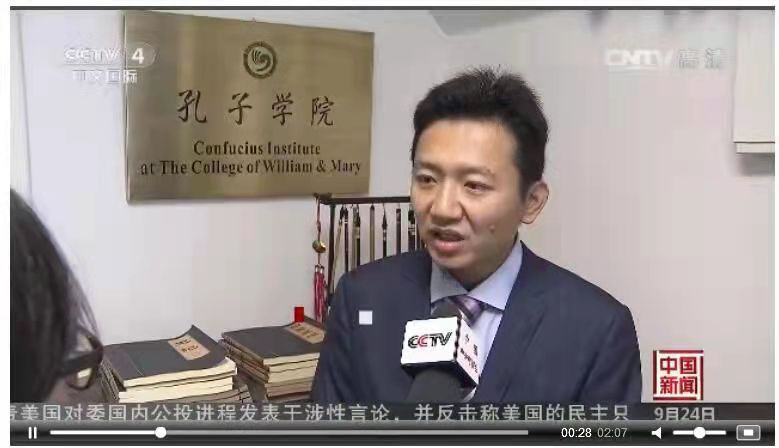图四 2016年在美国威廉玛丽孔子学院接受央视采访