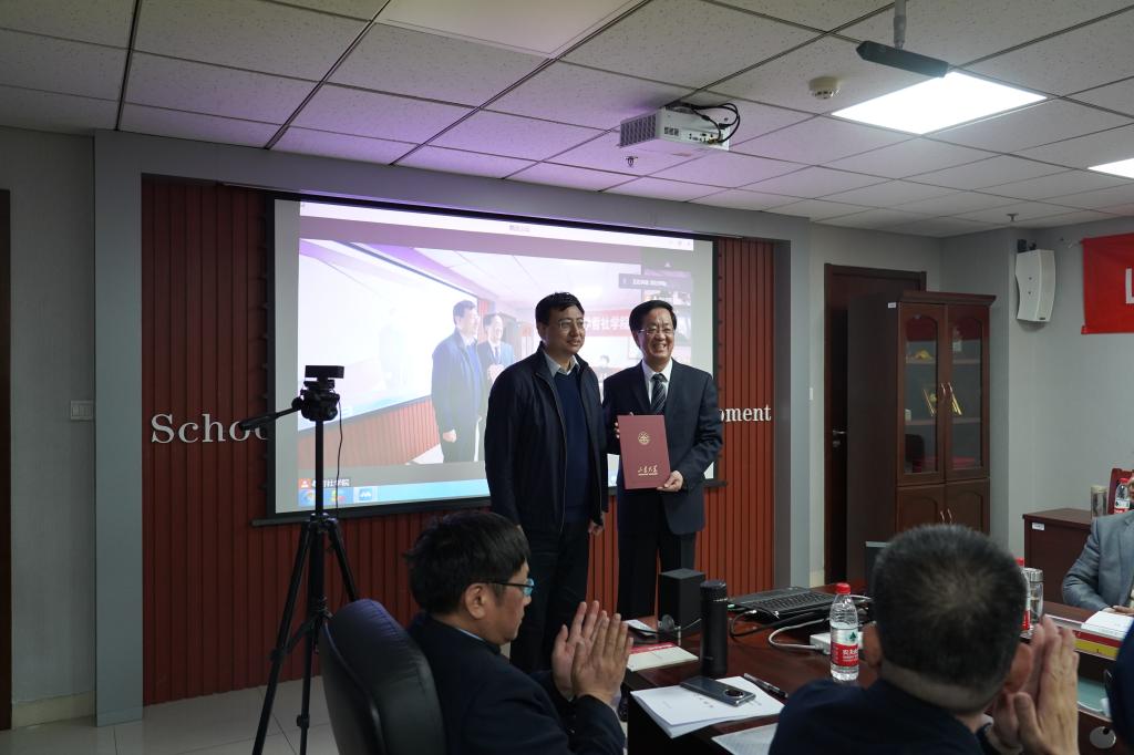 成立仪式上,邢占军、刘森林还分别代表学校、学院,向在现场参会的委员代表杨耕教授颁发了beat365英国官方网站兼职讲席教授、学院战略咨询委员会委员聘书。