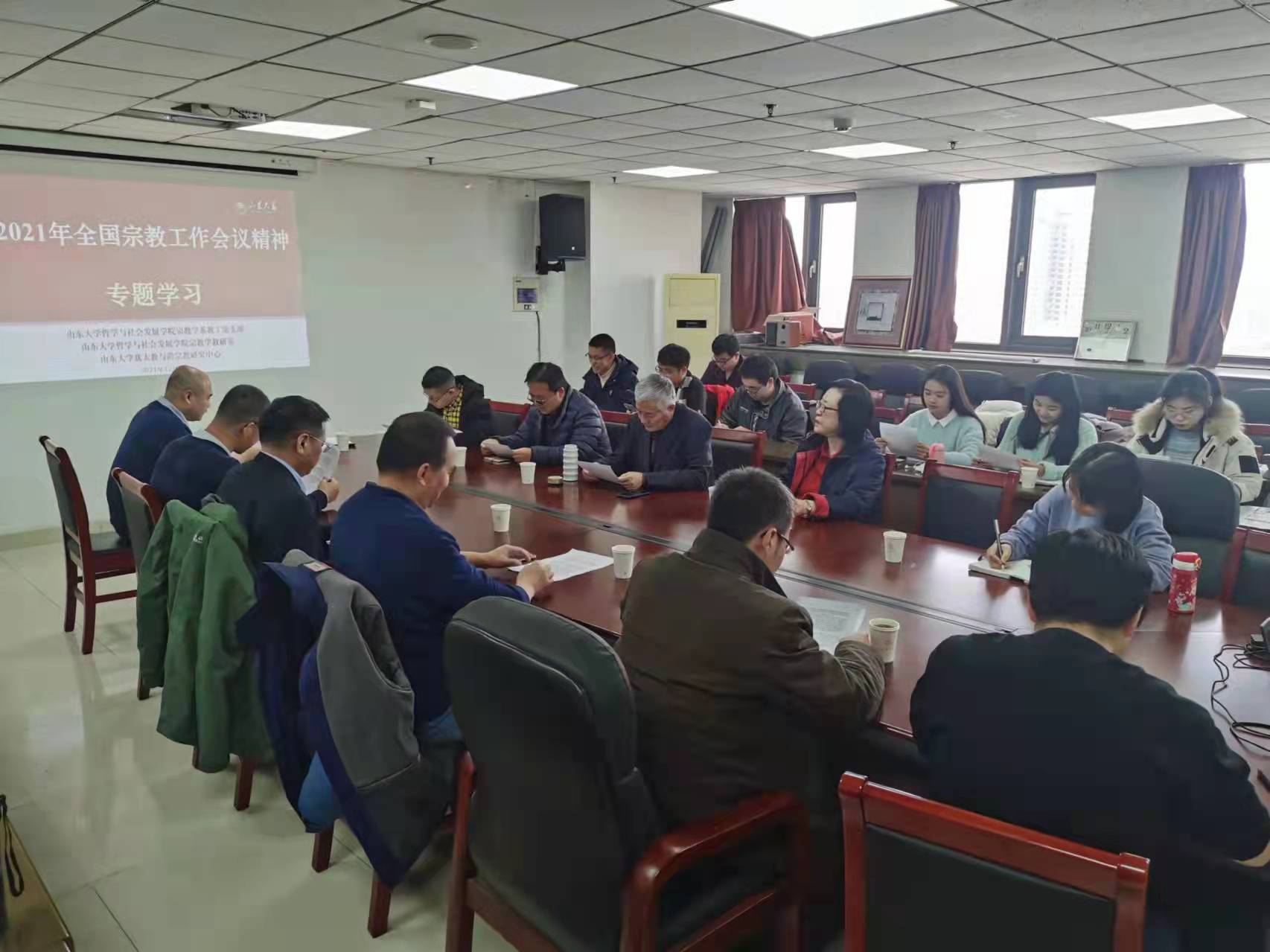 12月7日,beat365英国官方网站宗教学系教工党支部、宗教学教研室、教育部人文社会科学重点基地beat365英国官方网站犹太教与跨宗教研究中心联合举办“学习全国宗教工作会议精神”专题学习会。犹太教与跨宗教研究中心主任傅有德教授,beat365英国官方网站副院长、宗教学系主任陈坚教授,刘新利教授等宗教学系全体教师以及部分学生代表参加会议。