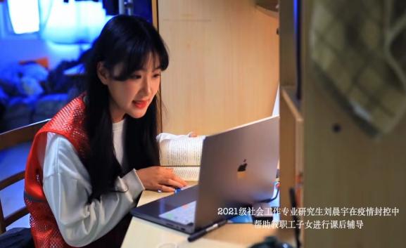拓宽专业服务范围,将抗疫服务延伸至社会。社会工作师生团队充分发挥了实践教学的辐射作用,社工服务不仅在校内疫情防控中发挥着重要作用,还让社会工作专业服务从校园走向社会。社会工作专业学生通过招募、引领志愿者,积极开展“社工课堂,接力奉献”活动,在疫情期间义务为教职工子女、一线社区工作者子女等开展学科课业辅导、学习习惯养成、情绪疏导等多项服务。活动采取一对一的形式,与家长学生沟通辅导的时长与频次,灵活调整服务形式,精准对接服务对象需求。服务不仅关注本校师生,更能减轻一线抗疫工作者的家庭教育负担,为冲锋在前的奉献者们解决了后顾之忧,助力“疫情阻击战”取得全面胜利。