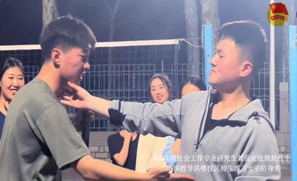 实施“社工+志愿者”联动的实践方案,以温情守护校园。自学校因疫情封闭管理之后,实践教学和实习实践转为“线上”进行,学生们的实践活动也由实验室和实习机构转向了露天体育场等场所。在老师们“线上+线下”的专业指导下,社工专业学生扎根本土性的服务需求,精准捕捉师生需求并对接服务资源,实施“社工+志愿者”联动的实践方案,使校内志愿服务更高效。社工专业的刘前、潘先耕同学作为退役士兵,积极链接其他退伍士兵大学生资源,组成志愿服务队,组织开展“校园三公里——环校园健步走”、“防身术教学”等多项实践活动,不仅满足疫情期间大学生兴趣拓展及生活娱乐、提高身体素质的需要,更有助于朋辈之间通过活动加强交流,以良好的精神面貌和强健的体魄抗击疫情。同时,社会工作专业学生组成宣讲团,接力宣读《坚定信心 珍重万千——致全体山大学子的倡议书》,科普“动态清零”这一总方针的必要性,通过疫情知识普及、防控技能和防护用品使用的培训等工作激励引导同学们同心战疫,共克时艰。