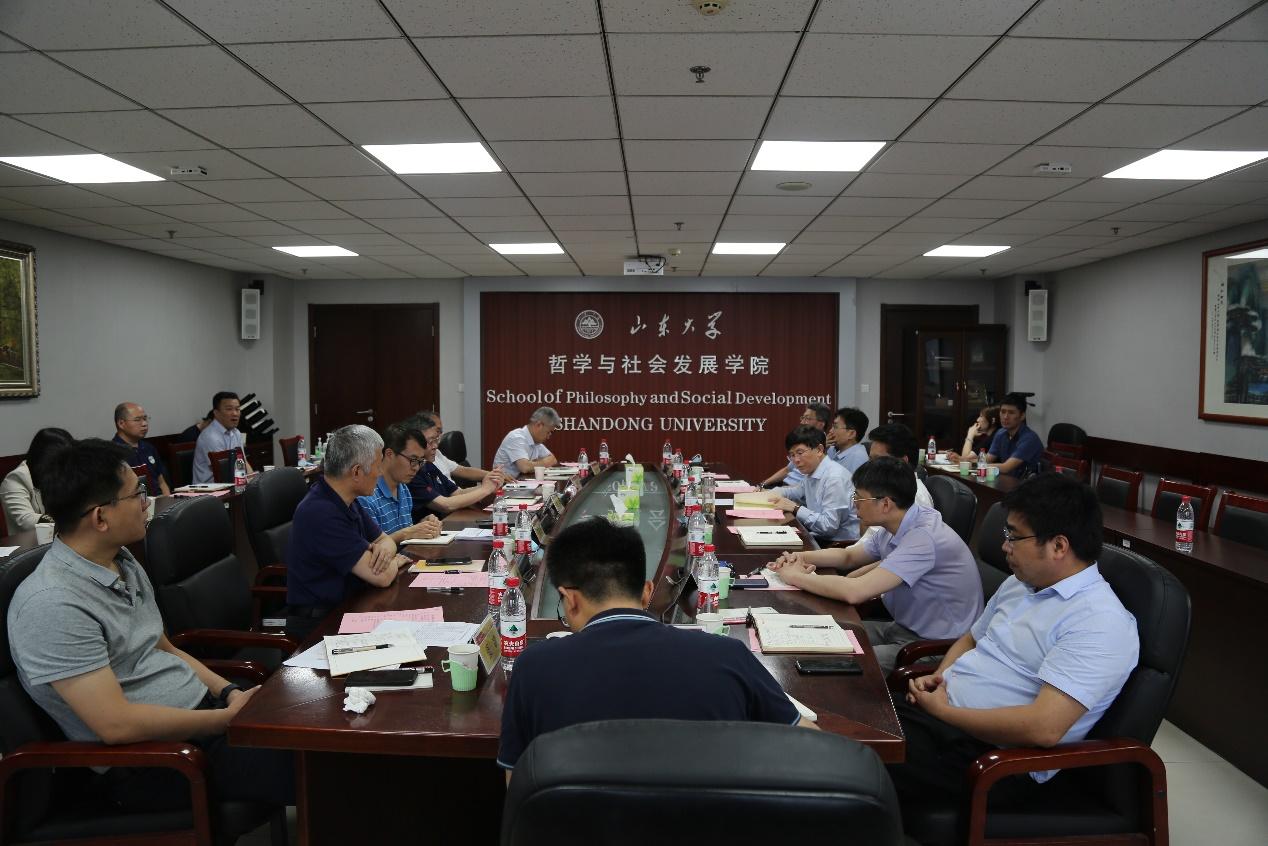 会议由学院党委书记郑倩主持。首先院长刘森林就学院的基本情况、人才队伍建设、人才培养、学科优势和短板、发展规划与当前面临的问题做了专题汇报;犹太教与跨宗教研究中心主任傅有德教授介绍了基地的成立和发展概况,并从人才队伍建设、学科建设经费、期刊建设、人才培养等方面具体做了汇报;易学与中国古代哲学研究中心常务副主任李尚信教授汇报了基地的建设情况及未来基地整改的方向与措施。