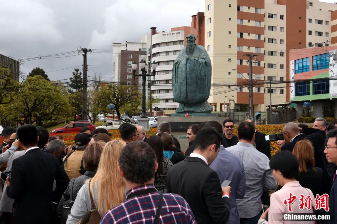 2017年9月30日,由中国美术馆馆长吴为山创作的孔子青铜雕像在巴西巴拉那州首府库里蒂巴市“中国广场”落成。