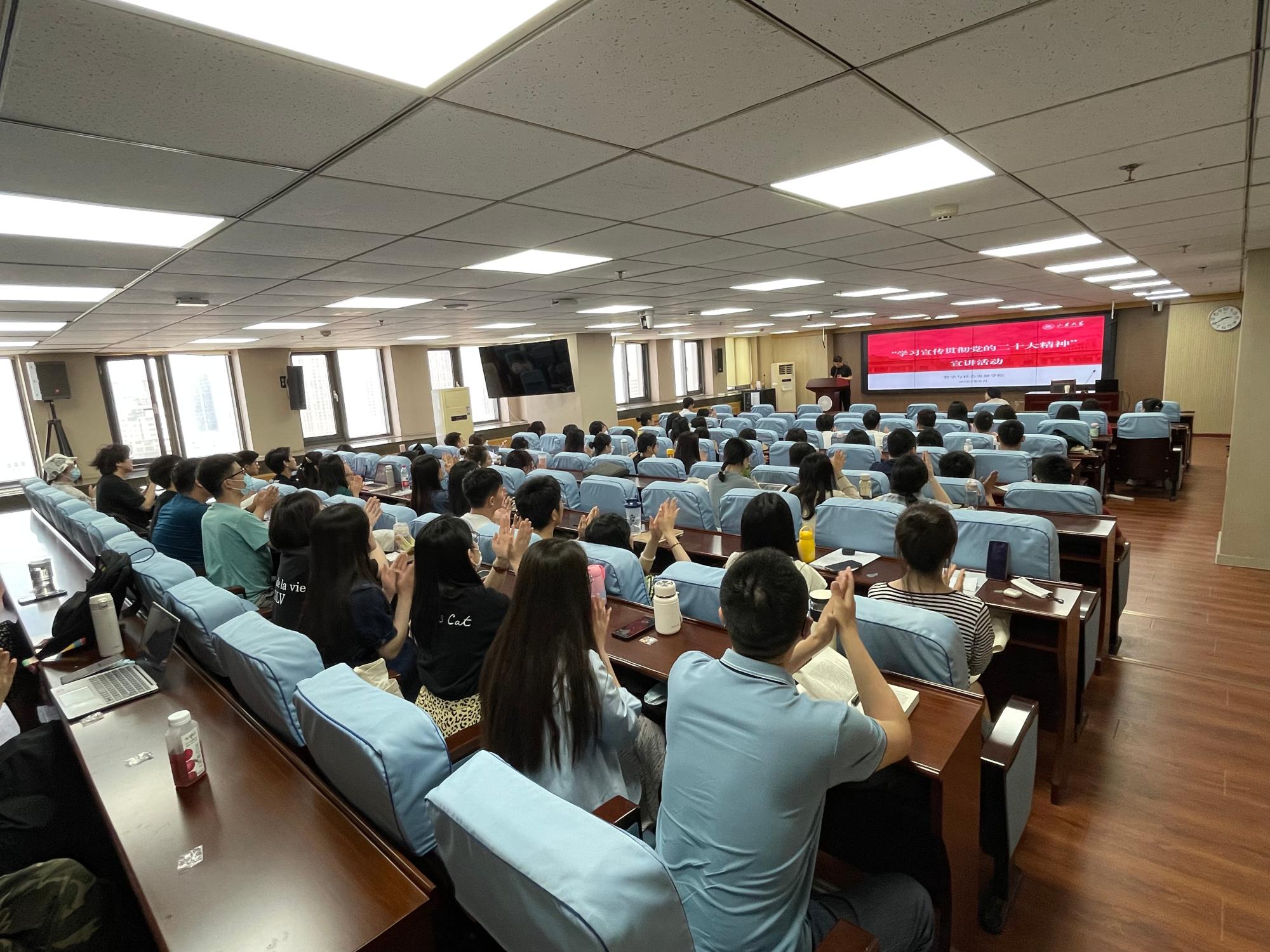教育大会第二阶段还邀请beat365英国官方网站党的二十大精神宣讲团为毕业生党员进行主题宣讲。宣讲团成员高睿晗以“肩负使命任务:用习近平新时代中国特色社会主义思想武装新时代青年”为主题,分享了青年学生担当使命的理解与感悟;刘议莲以“青春礼赞二十大,共创美好新生活”为主题进行宣讲;郝杰以“把握共同富裕内涵,奋力绘就美好画卷”为主题,讲述了共同富裕的深刻内涵;闫卓璨以“增进民生福祉,提高人民生活品质” 强调了“坚持人民至上”。