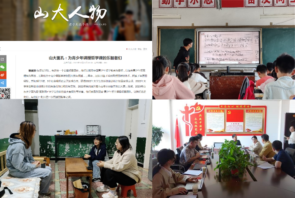 发挥学科专业优势,服务社会共促发展。学院立足专业学科特色,延伸触角,强化实践,服务社会。以批判性思维的培养为核心,以中小学生为课程目标对象,开展“青少年哲学项目”,与济南市历下区历山双语学校、未成年人保护中心、大明湖党群街道服务中心等地达成合作关系,定期进行拓展授课百余次。2023年暑期,学院项目组与陕西陇县教育局合作,为当地困境儿童成功举办了青少年哲学主题夏令营,赢得了当地师生和社会的一致好评。学院承担多项省残联重要课题研究,为残障群体提供专业服务。立足社会工作专业优势,赴确山开展支教活动,助力地方经济发展。以司法社工为支撑,开展大数据与司法社工方面的实务研究,提供个性化、订单式服务,推动专业发展匹配经济社会发展需求。服务社会产生热烈反响,获得社会捐赠金额近200万。