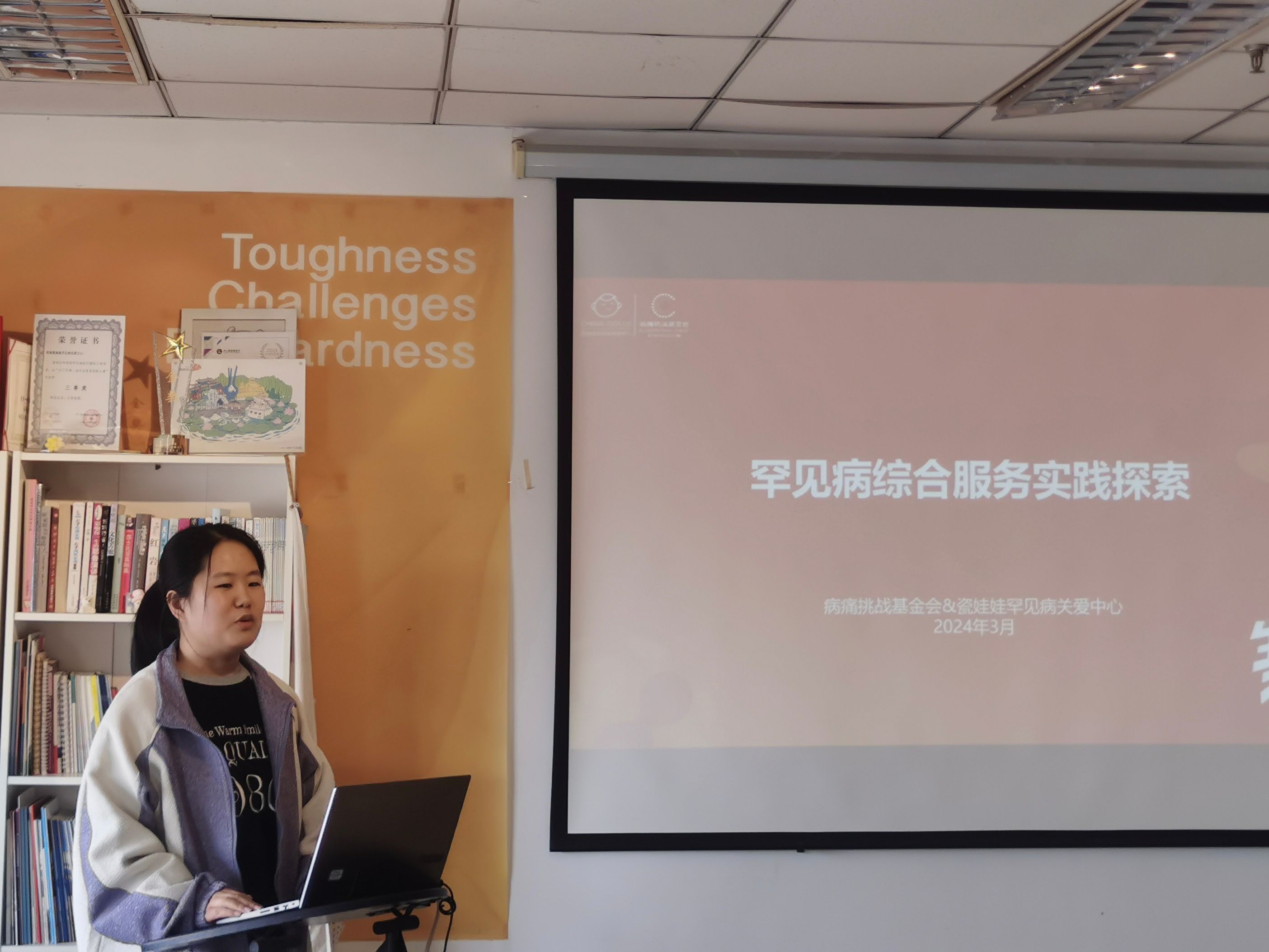 济南瓷娃娃关爱中心项目主管刘玉丛围绕罕见病群体现状和罕见病综合服务实践探索,向参会人员汇报了北京病痛挑战公益基金会、济南瓷娃娃罕见病关爱中心的工作情况,结合案例详细介绍了线下罕见病综合服务中心、线上罕见病资源中心与慈善参与多层次保障样板三大板块的内容。