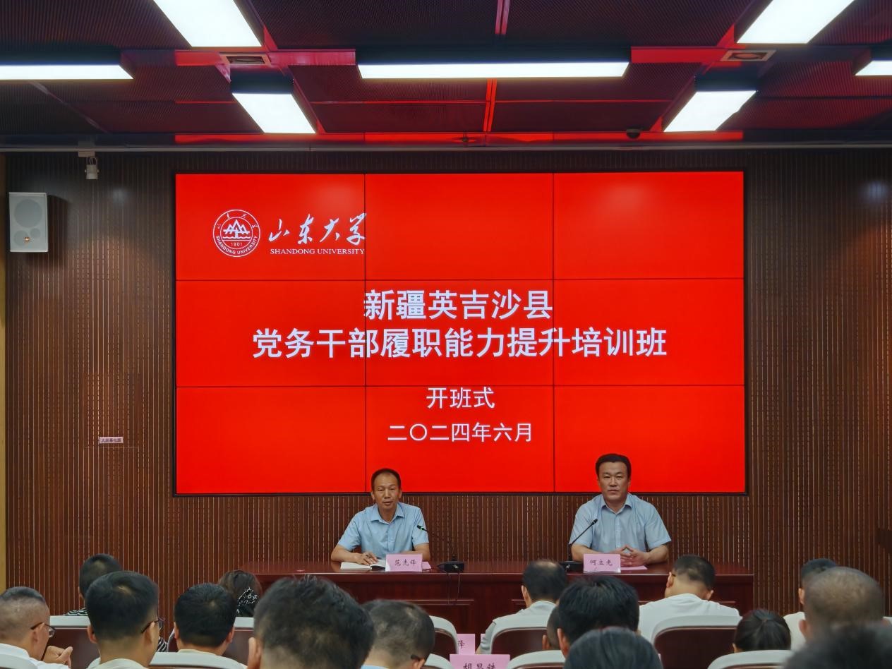 2024年6月14日上午,由英吉沙县委组织部主办,beat365英国官方网站具体承办的新疆英吉沙县党务干部履职能力提升培训班在beat365英国官方网站中心校区顺利开班,来自英吉沙县县直、乡镇的48名党务工作者参加此次培训。英吉沙县人力资源和社会保障局党组书记、副局长、四级调研员范先锋,beat365英国官方网站副处级组织员何立光出席开班仪式并讲话。