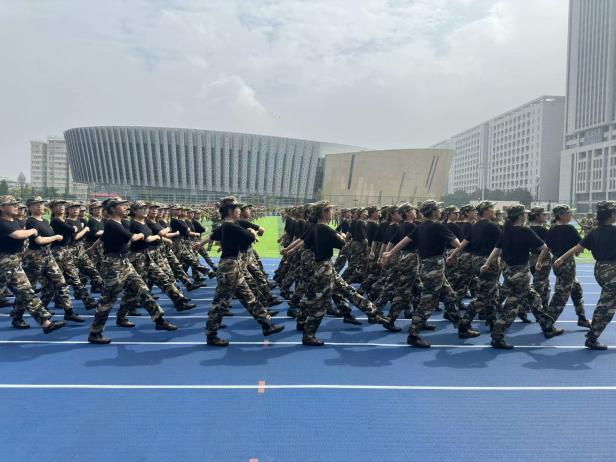 军训的日子里,新生们用汗水与坚持书写着青春的华章。他们在烈日下挺直脊梁,在风雨中坚守阵地,展现出了顽强的意志和不屈的精神。站军姿,他们目光坚定,如同一座座雕塑,彰显着军人的风采;踢正步,他们步伐整齐,落地有声,仿佛奏响了一曲激昂的乐章。蒙蒙小雨中的拉练,更是同学们拼搏精神与坚毅品质的一次升华。