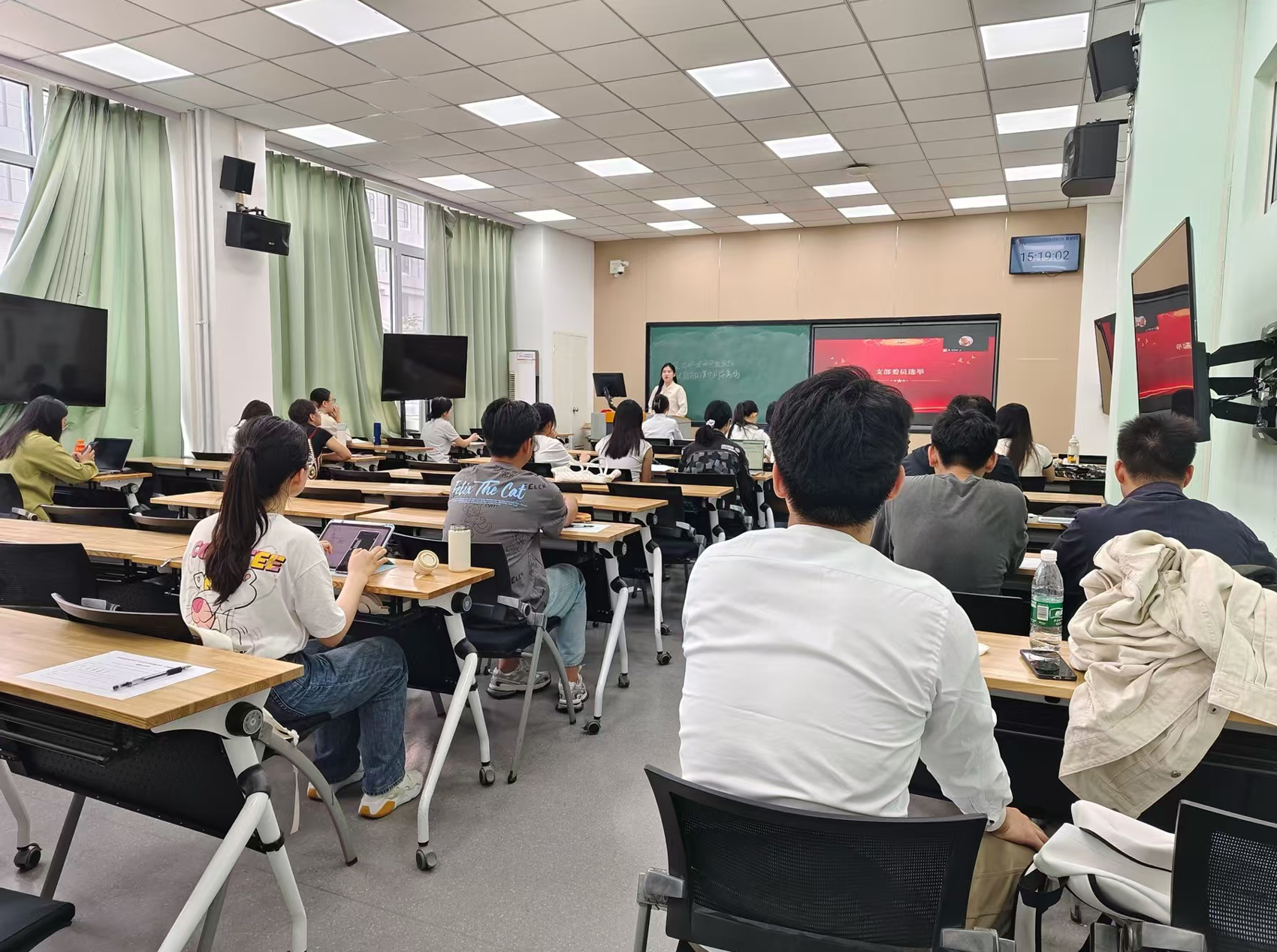 会议伊始,常张杰向大会汇报了支部在党员关系审查、党组织关系转接等方面的工作进展。大会开展选举产生了学硕第一党支部委员会委员,常张杰、张泽宇、李傲雪、刘嘉琪、乔森当选。随后,党支部委员会第一次全体会议选举常张杰为党支部委员会书记、张泽宇为副书记,明确了委员会成员分工。