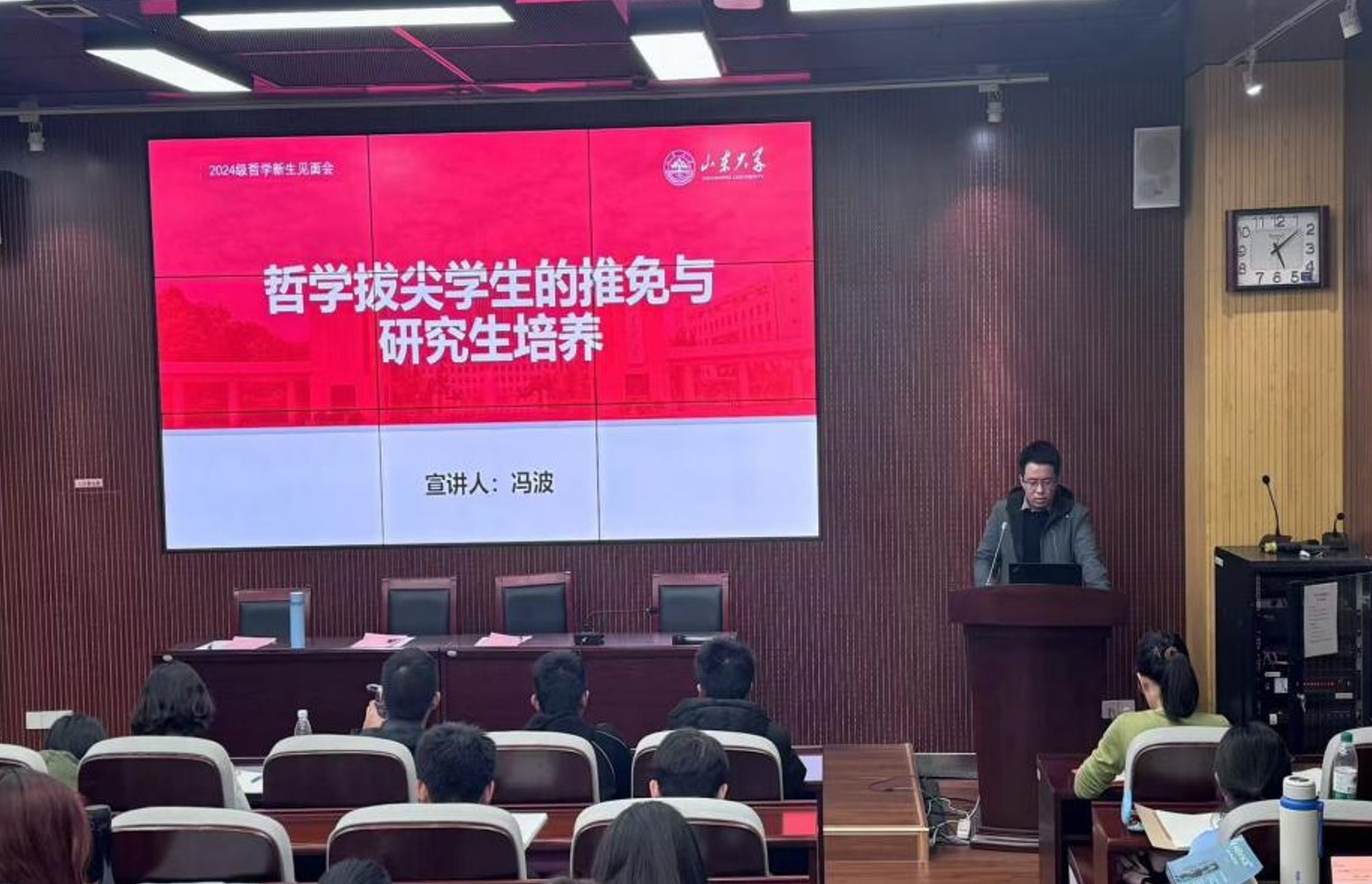 冯波就哲学拔尖学生的推免与研究生培养进行介了绍。他首先比较了强基计划、拔尖计划2.0与哲学类的培养模式,为同学们解答在不同培养模式下推免工作将如何开展,接着详细阐述研究生阶段的深化培养策略,包括尖兵计划、青苗计划以及博士生论坛等关键举措。