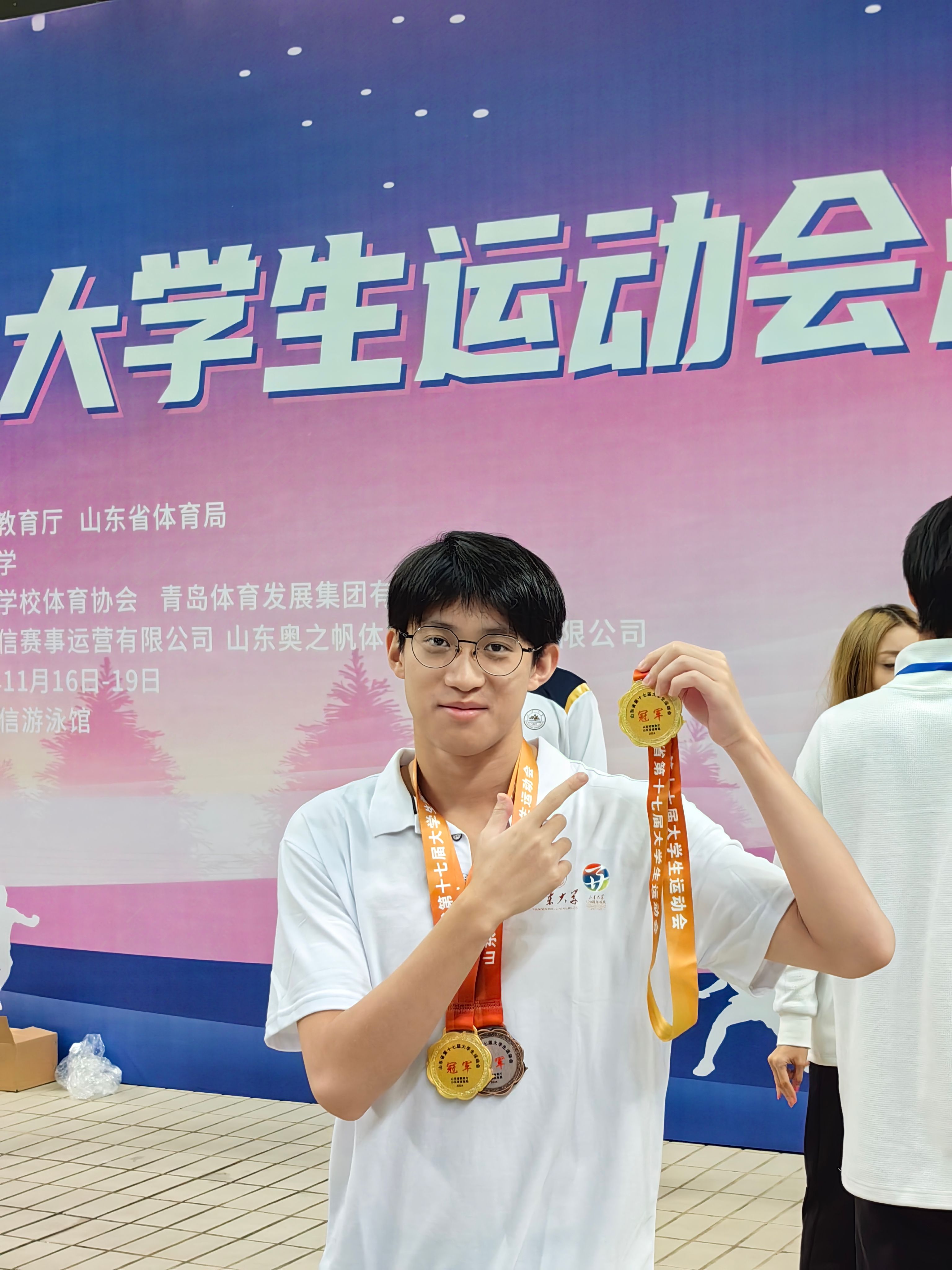 在山东省第十七届大学生运动会游泳比赛中,面对来自省内29所高校的上百位运动员,beat365英国官方网站甲组游泳队员们充分展现了“锐意进取,顽强拼搏,迎难而上”的体育精神,张博凯同学的出色表现,充分彰显了哲社学子全面发展、追求卓越的精神风貌。未来,我们期待哲社学子在更多赛事中勇创佳绩,为学校、学院增光添彩,以拼搏和汗水书写灿烂的青春之歌。