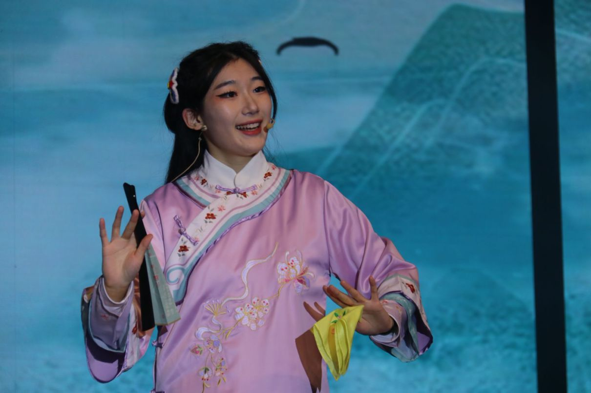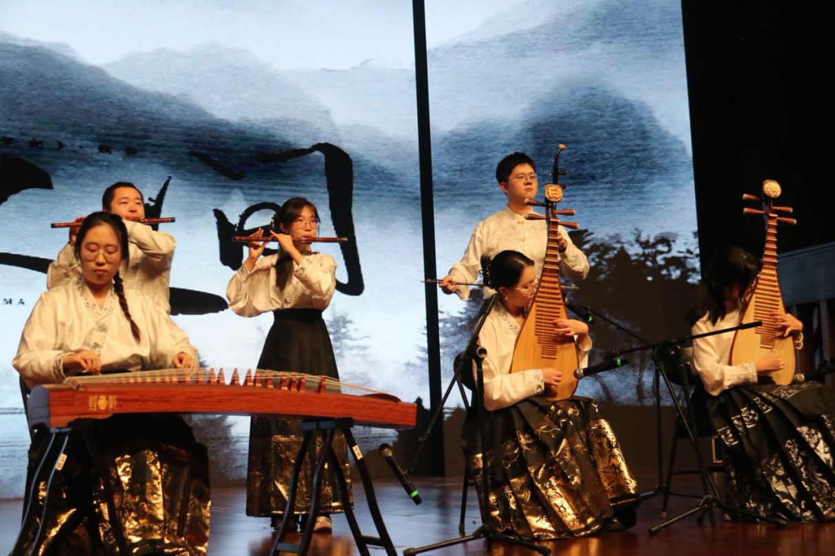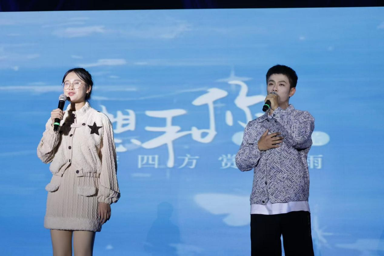 箫韵悠长,琴音袅袅,民乐合奏《十年人间》,让师生沉浸于传统乐器承载的厚重历史和时代光彩;粉墨登台,风华绝代,一曲京剧《卖水》、一舞《云伞惊鸿》,展现了新青年传颂着的国粹风骨;社会学系解玉喜、宗教学系王强伟、研究生辅导员吕汶鑫三位老师与研究生合唱《音有爱》,奏响导学心灵的和谐乐章,共同唱响属于学院的守护与陪伴;团委书记班梦姣、班主任毛林林与青年志愿者协会的志愿者们以青春活泼的手势舞,生动演绎哲社学子热心助人,服务社会的责任担当与奉献热忱。