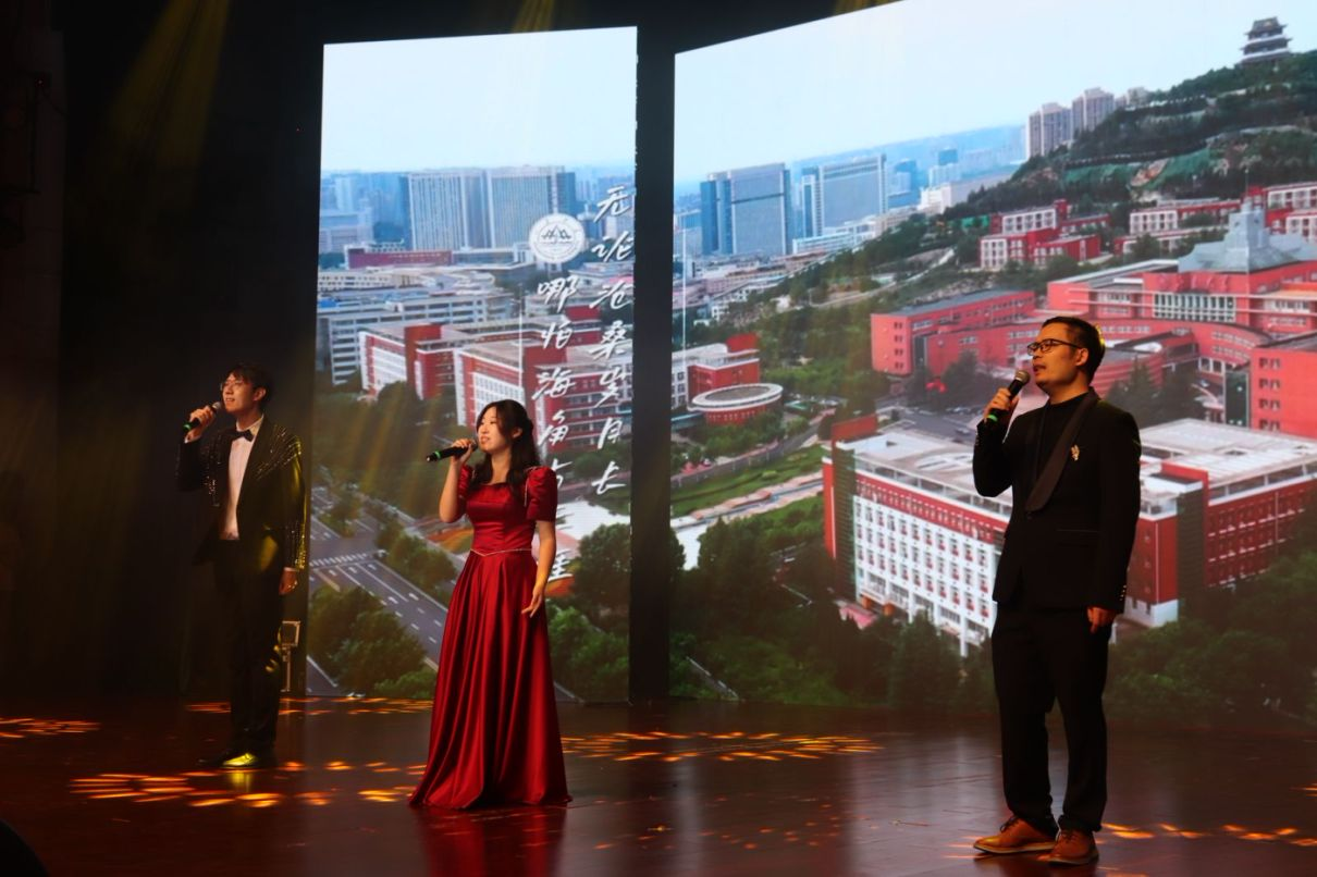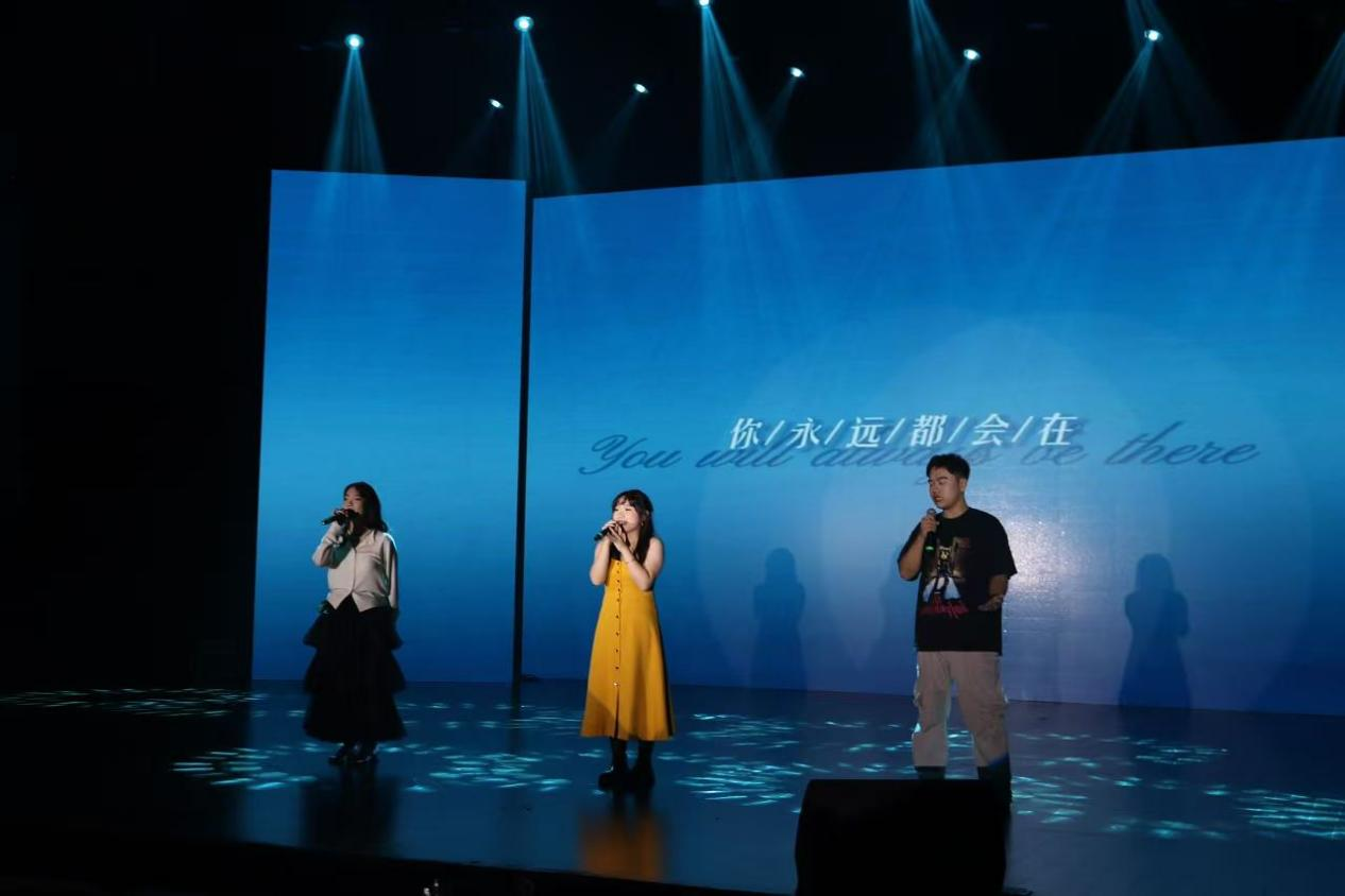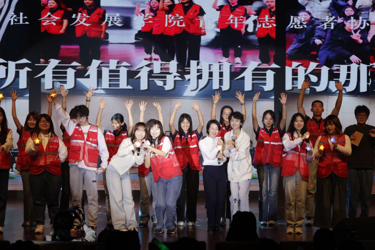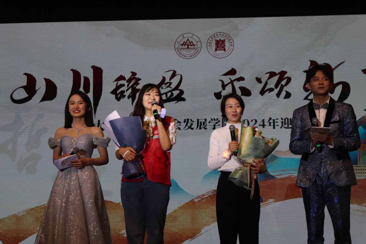 哲社师生昂扬向上的精神风貌与多才多艺,令观众热情高涨,点点荧光汇成星河,声声喝彩响彻舞台。抽奖互动环节同样令人紧张而激动,学院党委书记梅强、副书记马燕、王文方教授抽取幸运观众,现场气氛热烈。最后,2024级哲学强基班班主任陈佩辉老师、2024级本科新生李心怡、硕士新生杨阳与全体演职人员登台献唱《我的山大我的家》,用歌声为本场晚会画上圆满句号。