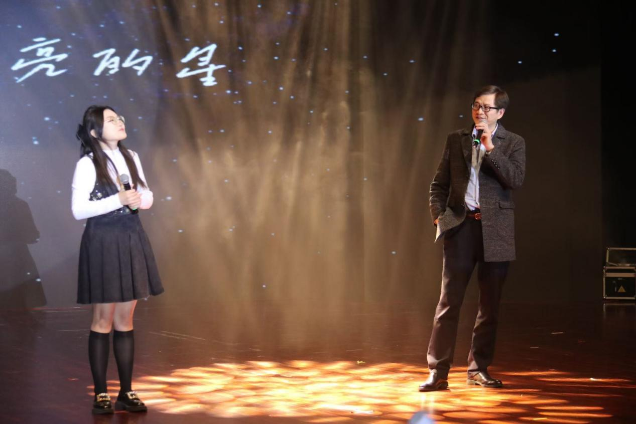爱若舞蹈队带来的《万疆》,以青春之姿,勾勒出山河无恙的盛世图景;2024级易学与中国古代哲学研究中心研究生孔文森演唱的音乐剧《Never Enough》,在歌声中诠释坚定的勇气,于旋律中传递希望的光芒;大手拉小手,社会实践基地的小学生与2024级社会学专业田书菡合作的器乐合奏《沉思》,悠扬婉转,正是我院社会实践成果的生动写照;哲学系教授尚文华和2023级社会工作专业研究生栾恺合唱的《夜空中最亮的星》,师生携手,迸发穿越夜空的力量。