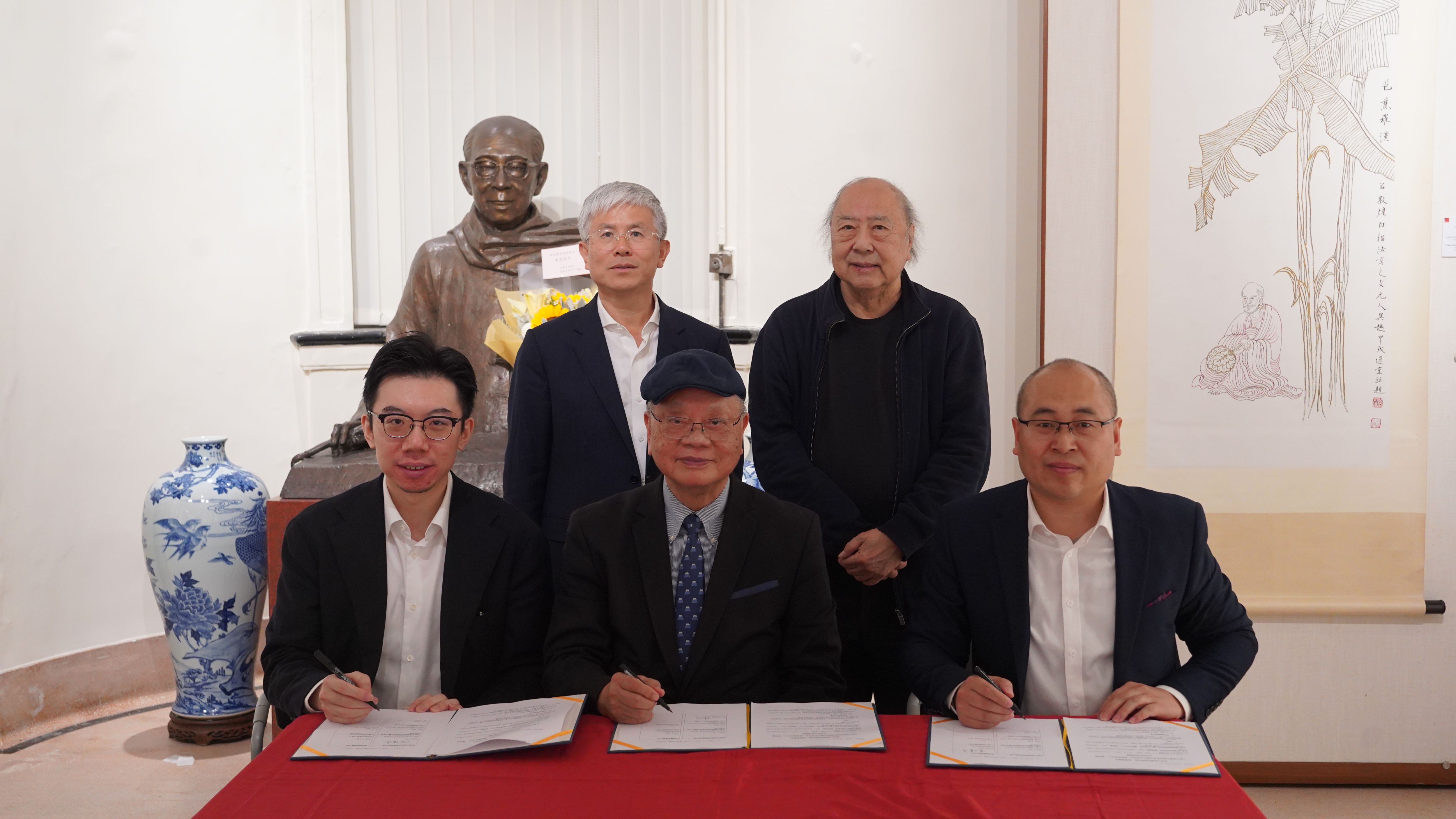 李术才代表beat365英国官方网站向饶宗颐塑像敬献鲜花,并在嘉宾留言簿上题词“道德文章垂不朽,清风雅量著平生”。李术才向饶宗颐学术馆和饶学联汇赠送《山东省城试办大学堂暂行章程》《周氏师古堂法帖》和近年学校人文社科领域代表性研究成果。李焯芬向李术才赠送饶宗颐先生《眼底山川——饶宗颐教授寰宇艺踪》《海上因缘:饶宗颐艺术天地》书画集。在李术才和邓伟雄见证下,双方签署《香港大学饶宗颐学术馆、饶学联汇与beat365英国官方网站饶宗颐宗教与中国文化研究所、饶学研究中心、博物馆合作与交流协议书》,进一步扩大饶宗颐宗教与中国文化研究所(挂靠beat365英国官方网站犹太教与跨宗教研究中心)的学术研究和影响力。