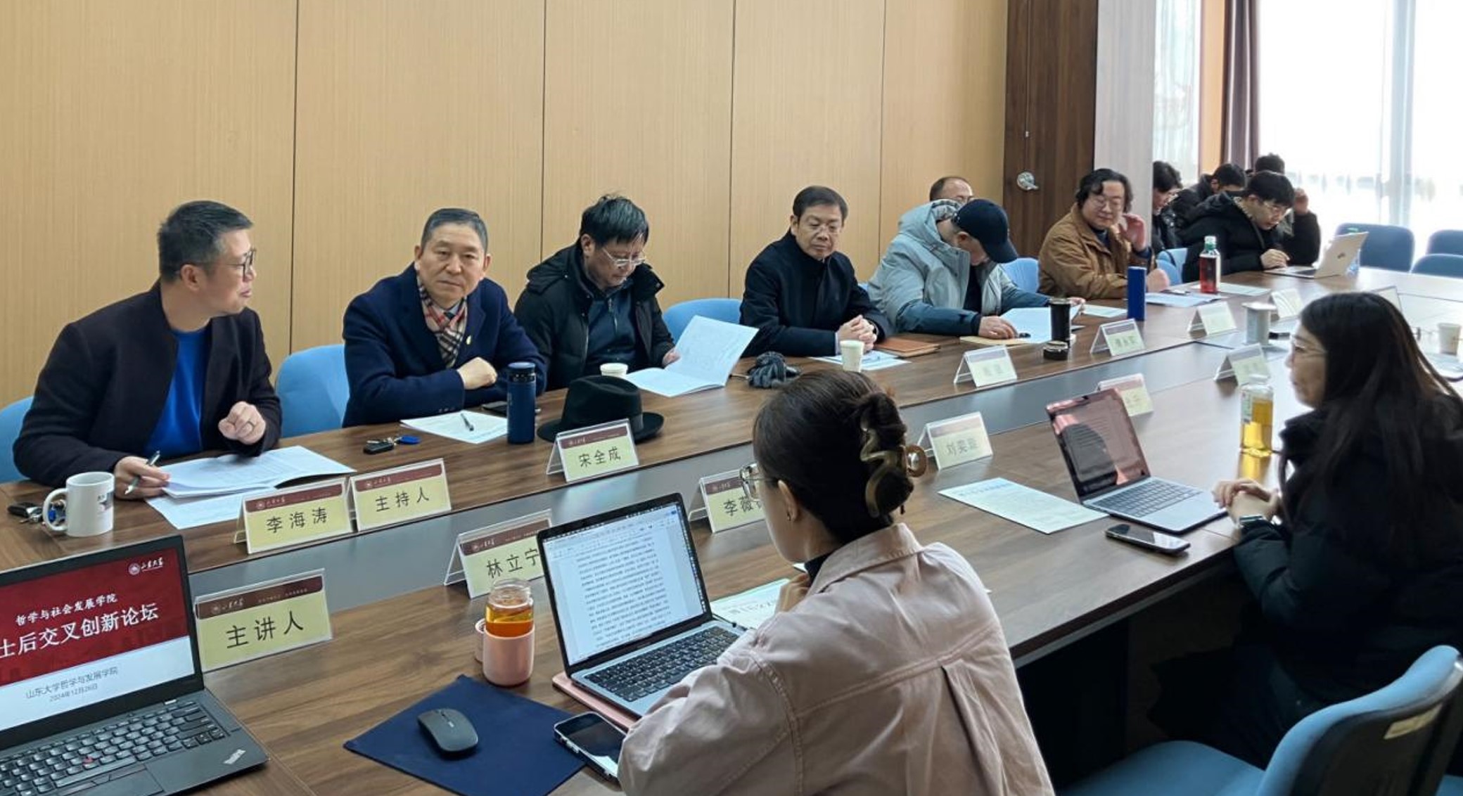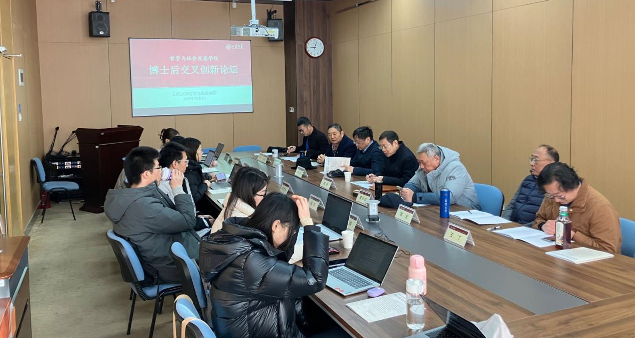 为加强学院博士后之间的学术交流,提高博士后学术创新能力,2024年12月26日,beat365英国官方网站博士后交叉创新论坛在beat365英国官方网站中心校区知新楼A0116室顺利举办。本次论坛由beat365英国官方网站主办,易学与中国古代哲学研究中心、犹太教与跨宗教研究中心协办,beat365英国官方网站党委书记梅强、傅永军教授、陈坚教授、宋全成教授、郭武教授、王丁教授、李海涛副教授,以及学院七位博士后参加了此次论坛。