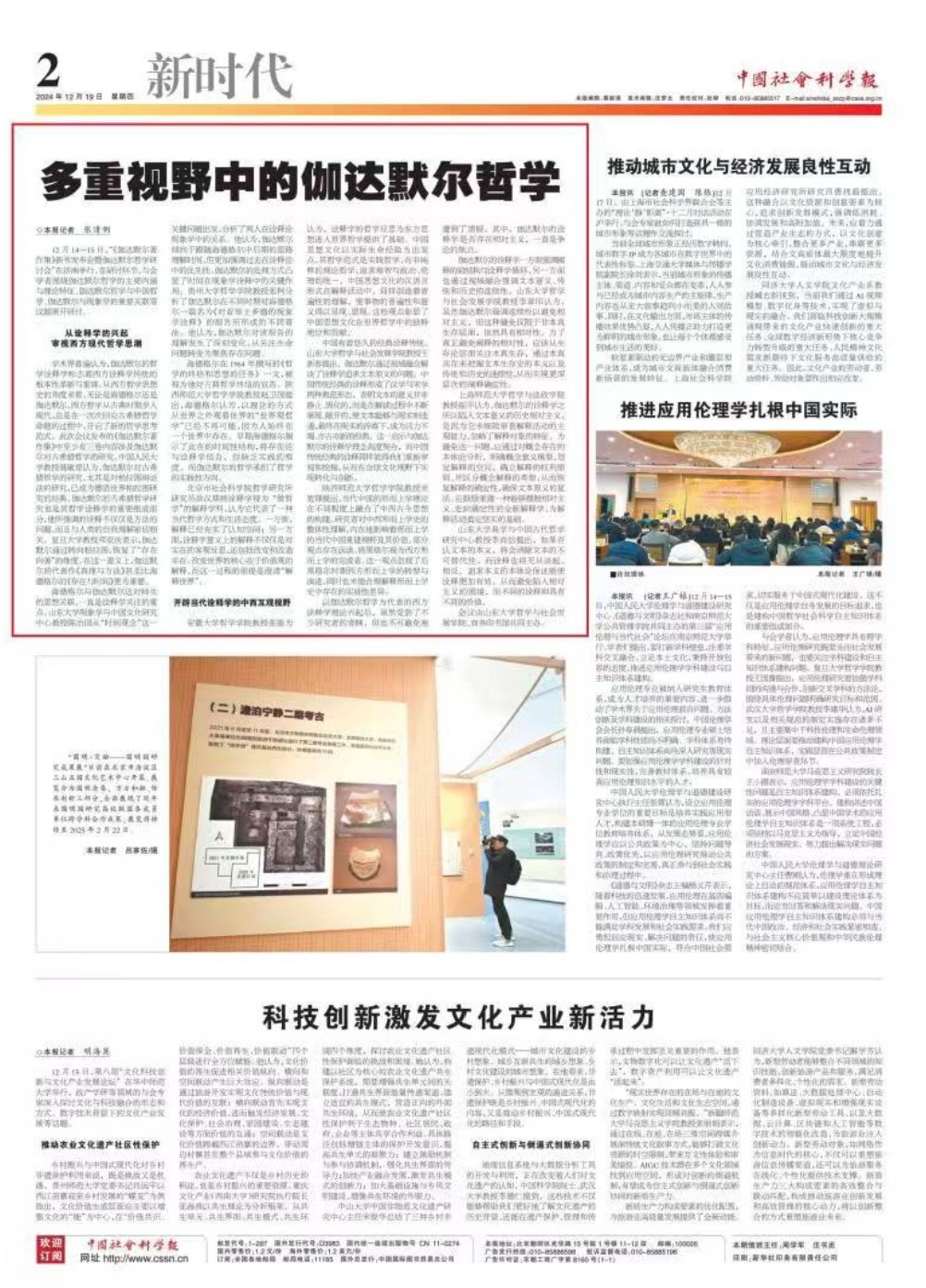 《中国社会科学报》报道《伽达默尔著作集》新书发布会暨伽达默尔哲学研讨会