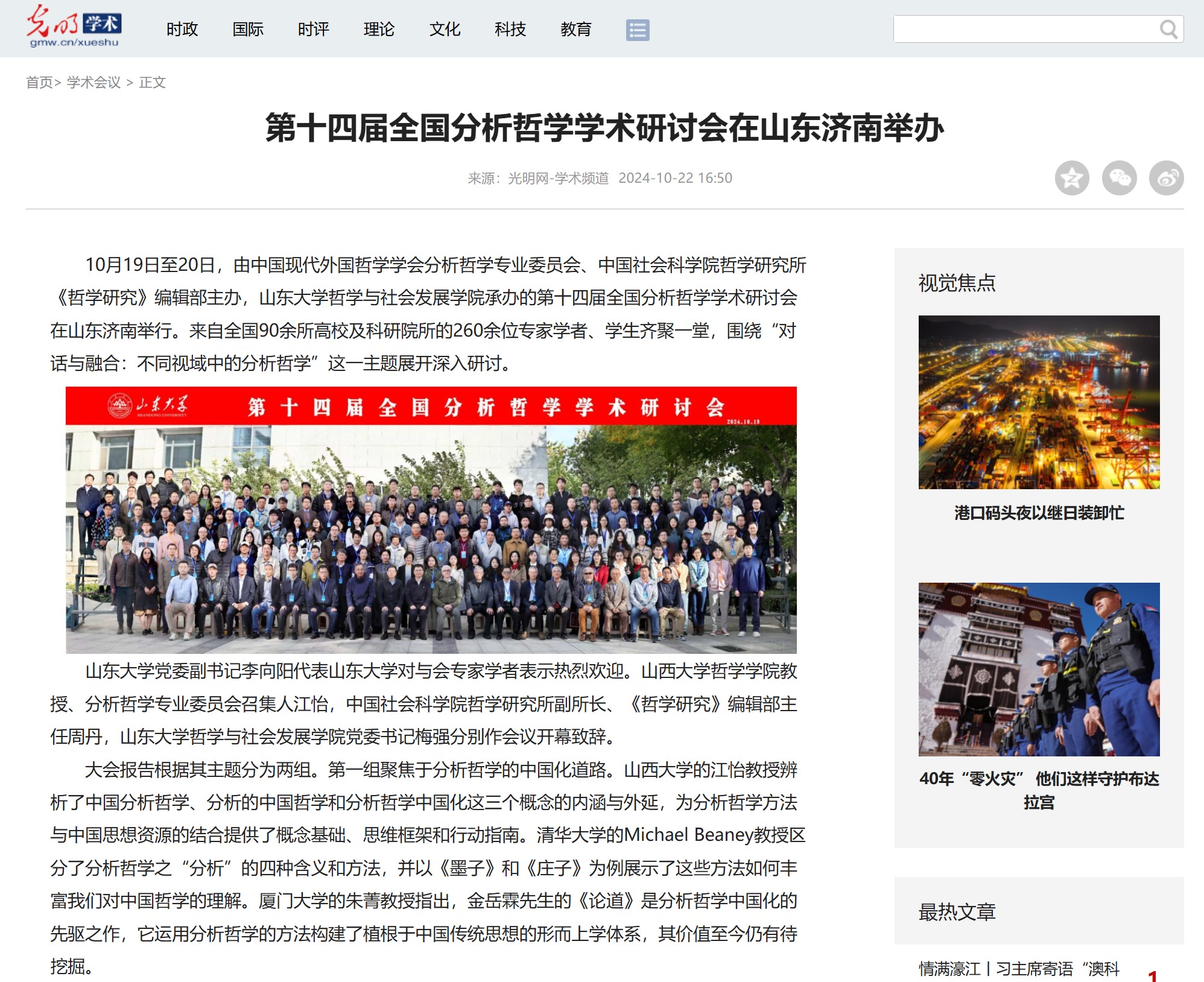 光明网报道第十四届全国分析哲学学术研讨会