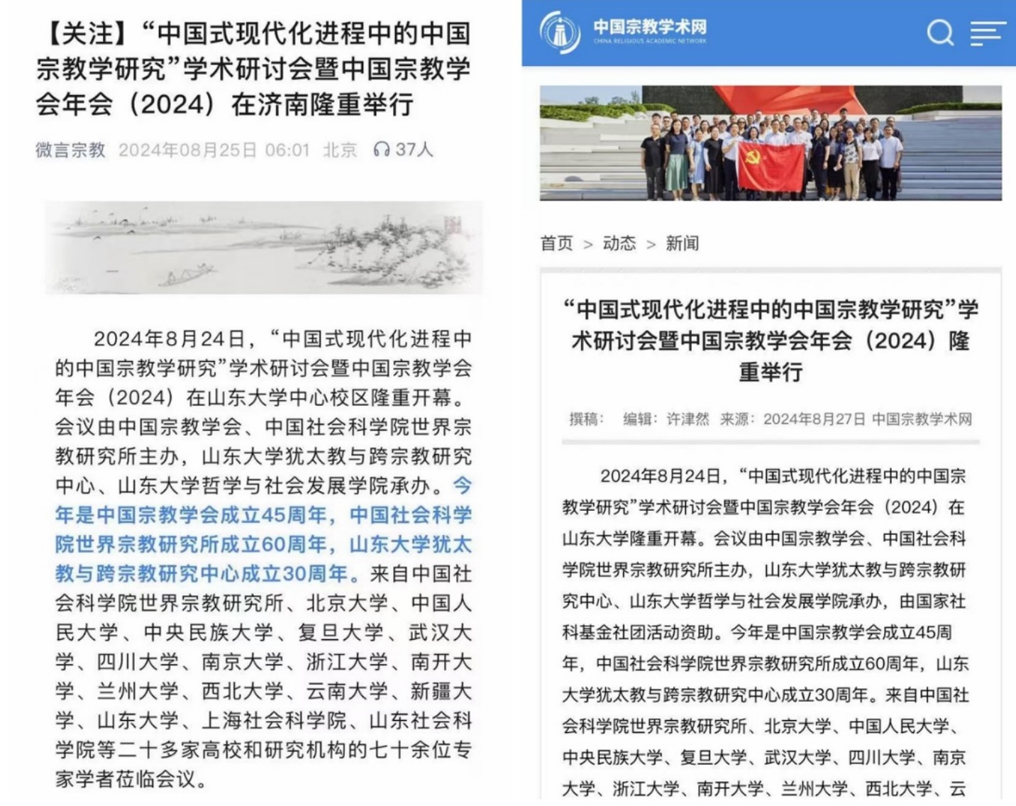 “微言宗教”公众号、中国宗教学术网报道“中国式现代化进程中的中国宗教学研究”学术研讨会暨中国宗教学会年会(2024)
