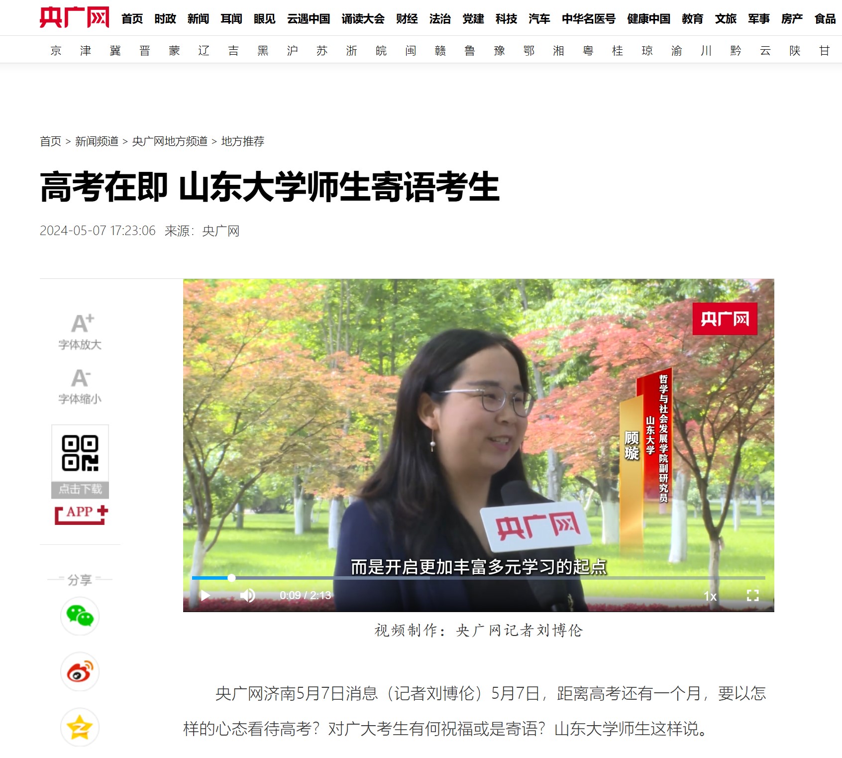 顾璇接受央广网采访并寄语高考考生