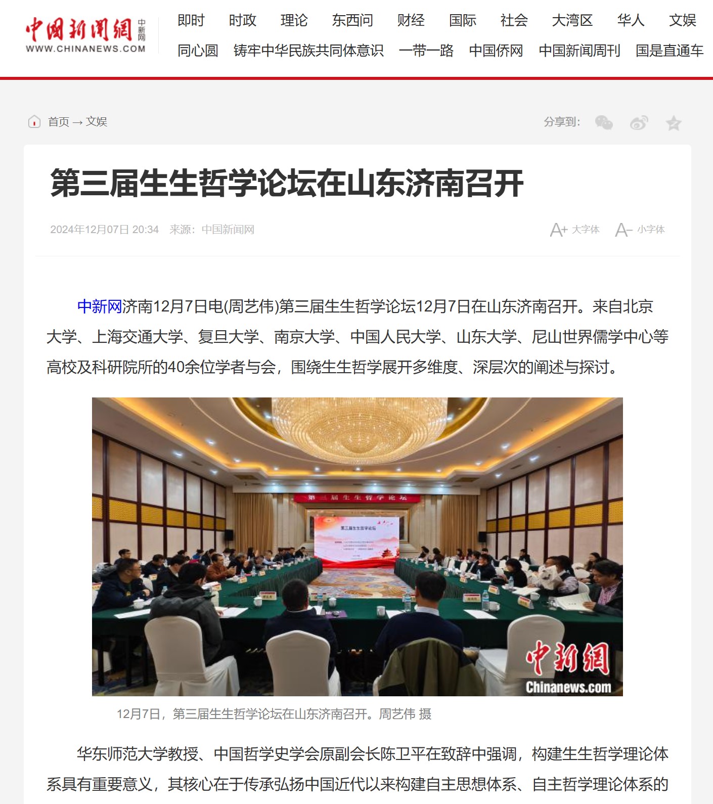 中国新闻网报道第三届生生哲学论坛