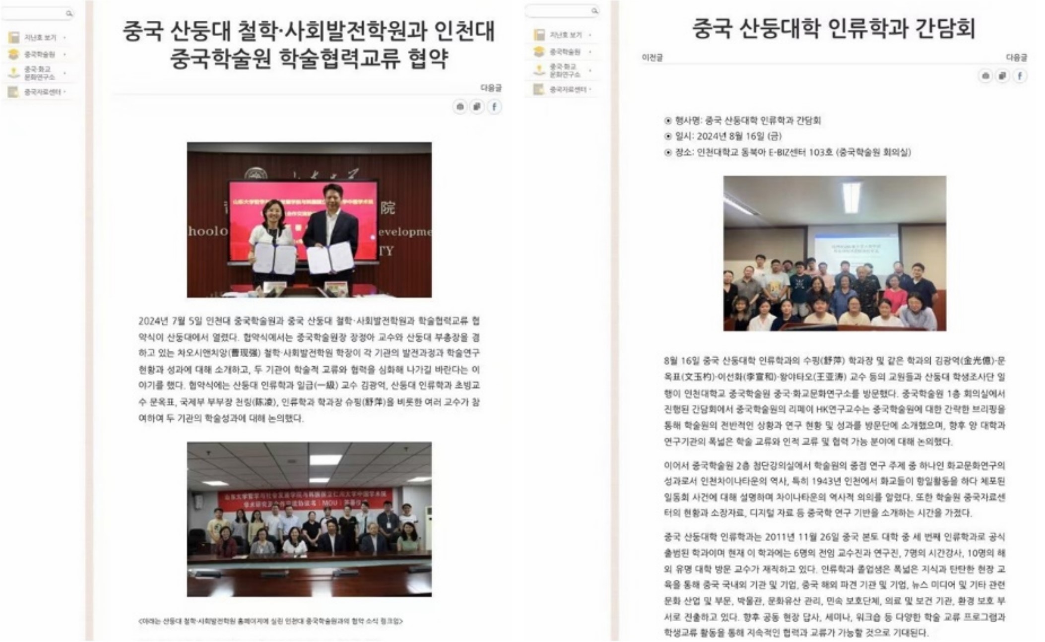 韩国国立仁川大学中国学术院网站报道签约仪式和学术交流活动