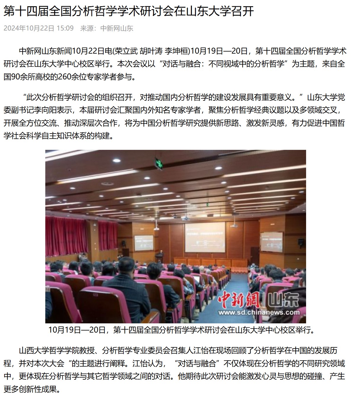 中国新闻网报道第十四届全国分析哲学学术研讨会